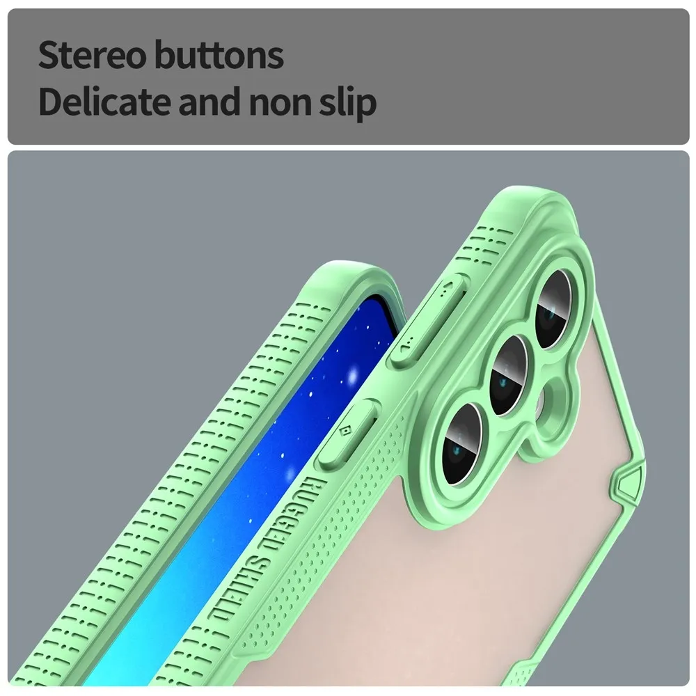 ✅【Tartós és könnyű konstrukció】A Samsung Galaxy S26 matt zöld színű tokja kemény PC-ből és puha TPU-ból készült. A tok tartós és könnyű, strapabíró védelmet nyújt anélkül, hogy növelné a telefon súlyát. ✅【Gél peremű】 TPU tömör, puha peremű, sztereó gombokkal, kényelmes fogást biztosít, biztonságos fogást biztosít és csökkenti a véletlen leejtések kockázatát. ✅【Megerősített sarkok】 A négyszögletes légzsákos kialakítás fokozott védelmet nyújt, és javítja a készülék ütés- és leejtésállóságát. ✅【Kamera- és képernyővédelem】 Az 1 mm-es megemelt perem a kamera és a képernyő körül maximális védelmet nyújt a karcolások és leejtések ellen. ✅【Stílusos és praktikus kialakítás】 A félig átlátszó matt felület nemcsak a telefon esztétikáját fokozza, hanem ellenáll az ujjlenyomatoknak és a foltoknak is, így a telefon elegáns megjelenésű. ✅【Precíz kivágások a könnyű hozzáférés érdekében】A precíz kivágásoknak köszönhetően a tok könnyű hozzáférést biztosít az összes gombhoz, porthoz és kamerához, így a tok eltávolítása nélkül is biztosítható a teljes funkcionalitás.