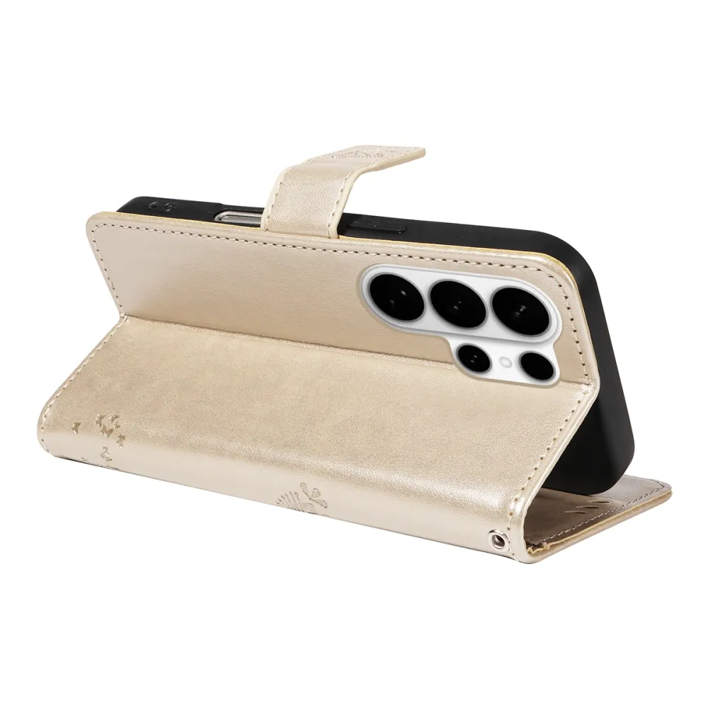 Arany pénztárca tok fák Samsung Galaxy S26 Ultra számára