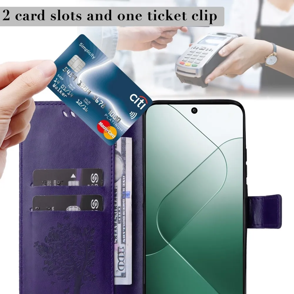 Sötét lila pénztárca tok Trees a Xiaomi 14-hez