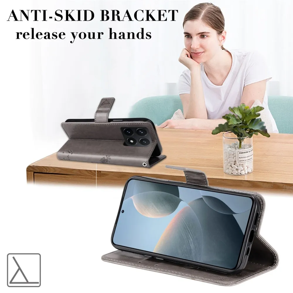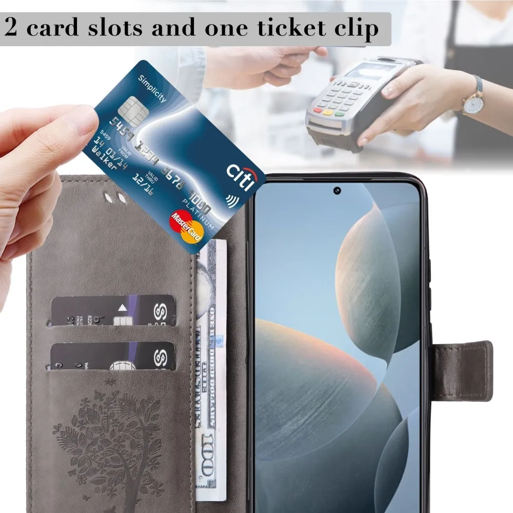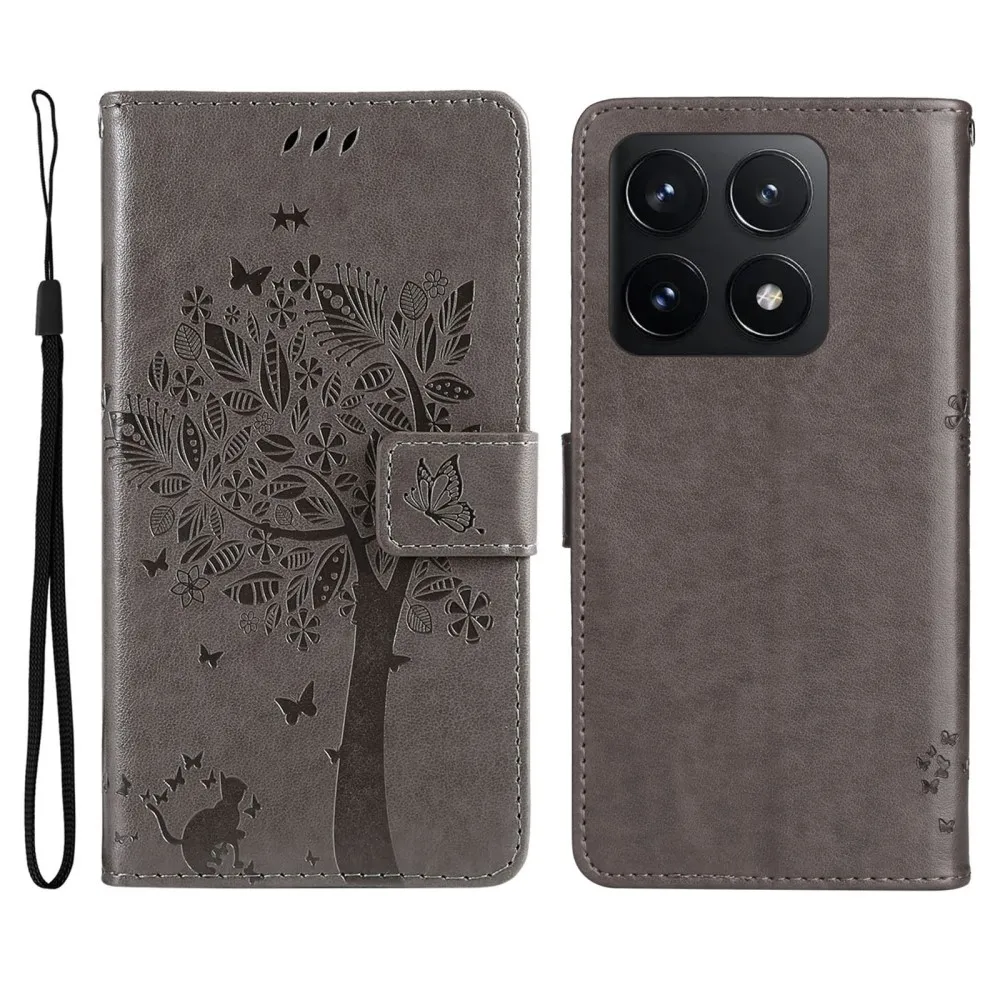 Szürke pénztárca tok fák a Xiaomi 14T számára