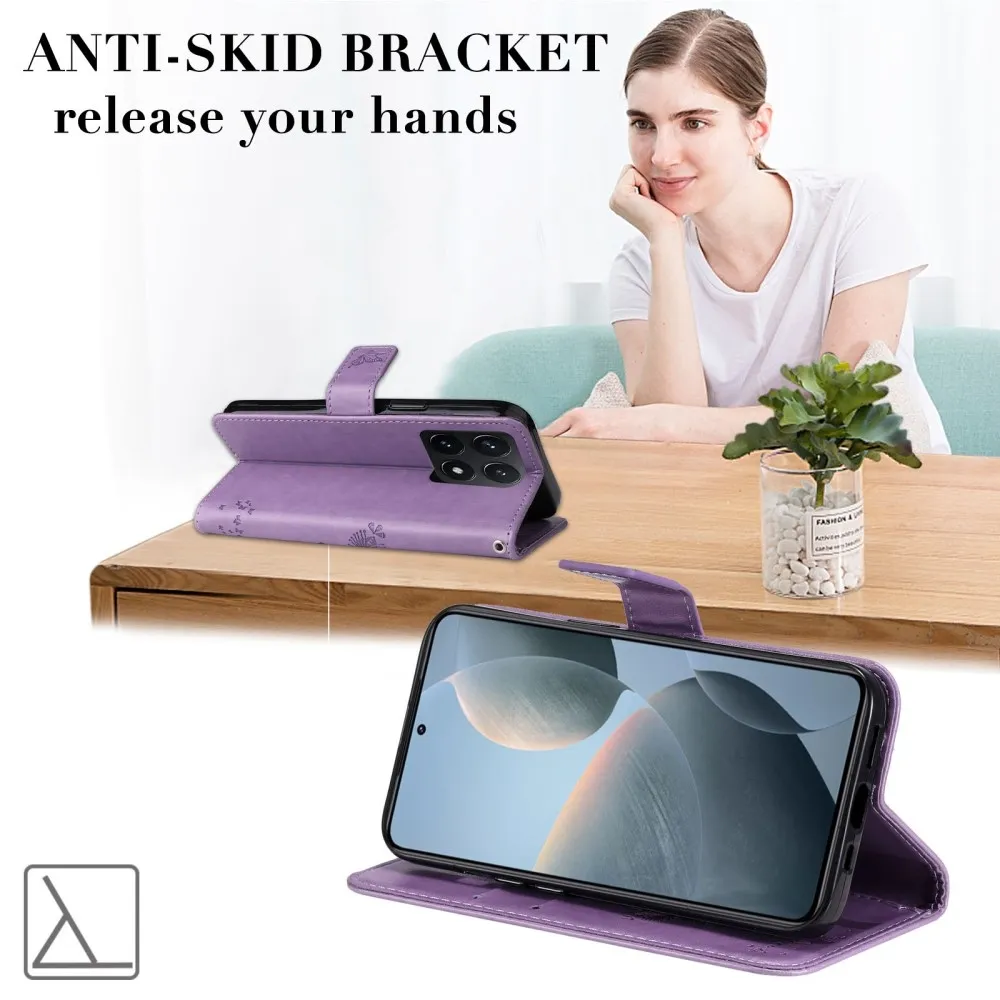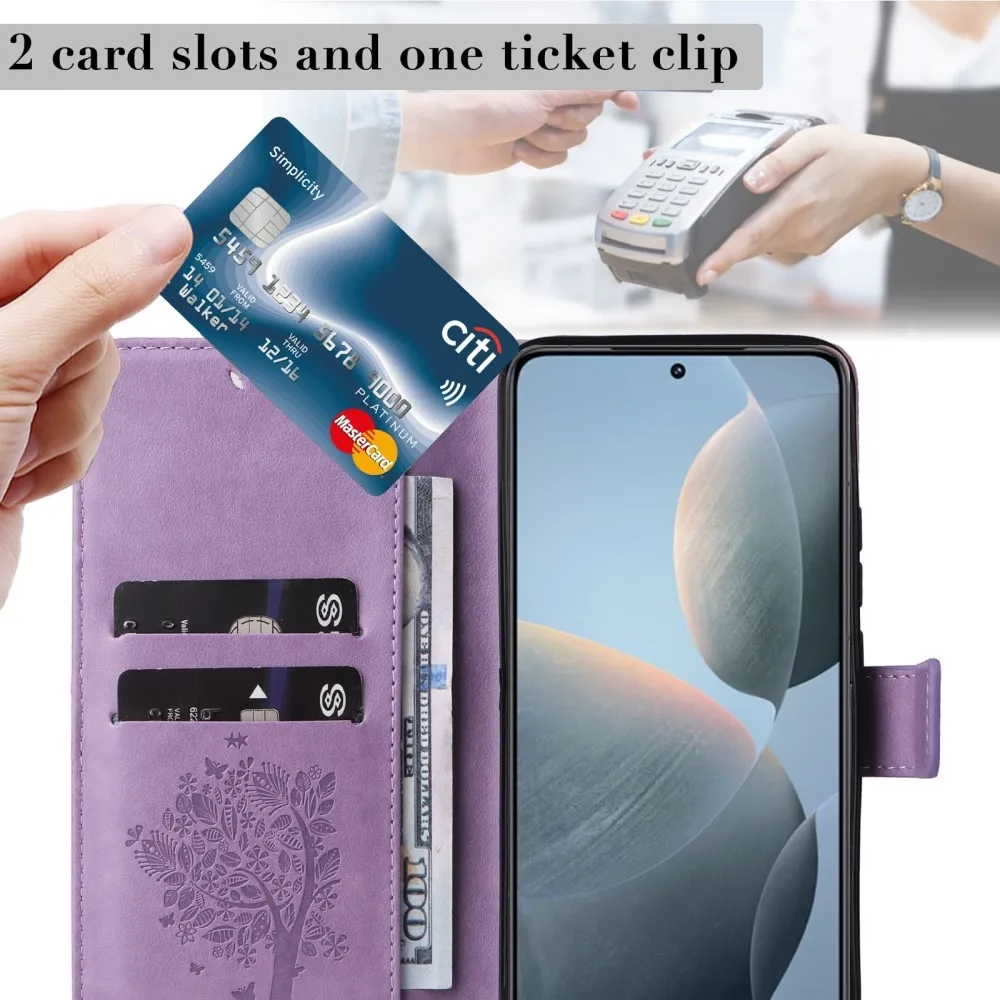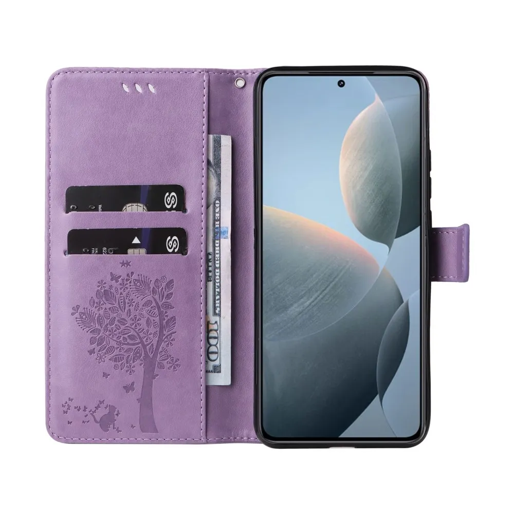 Világos lila pénztárca tok Trees a Xiaomi 14T számára