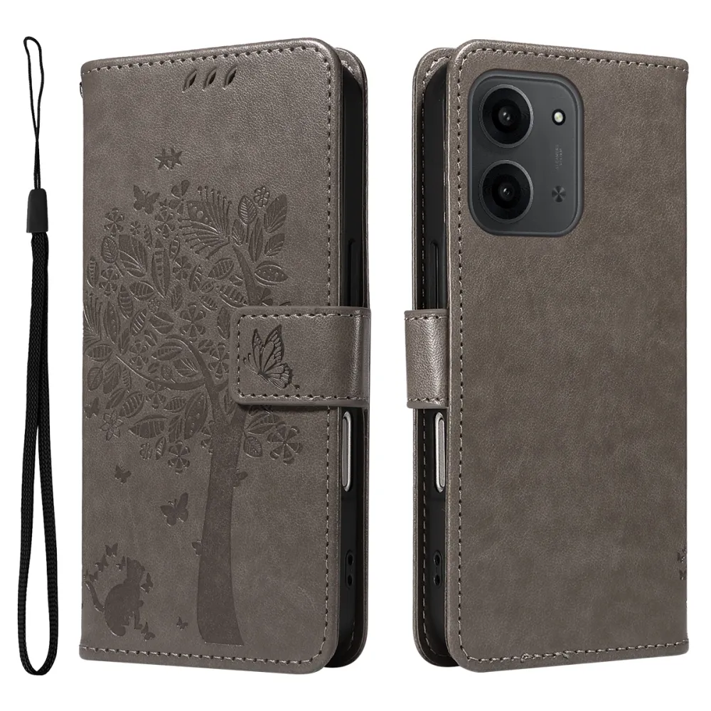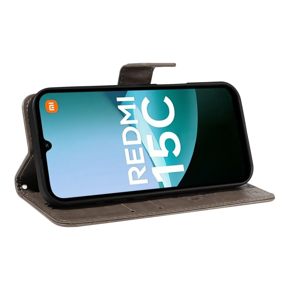 Szürke pénztárca tok fák Xiaomi Redmi 15C 4G/5G (173mm) számára