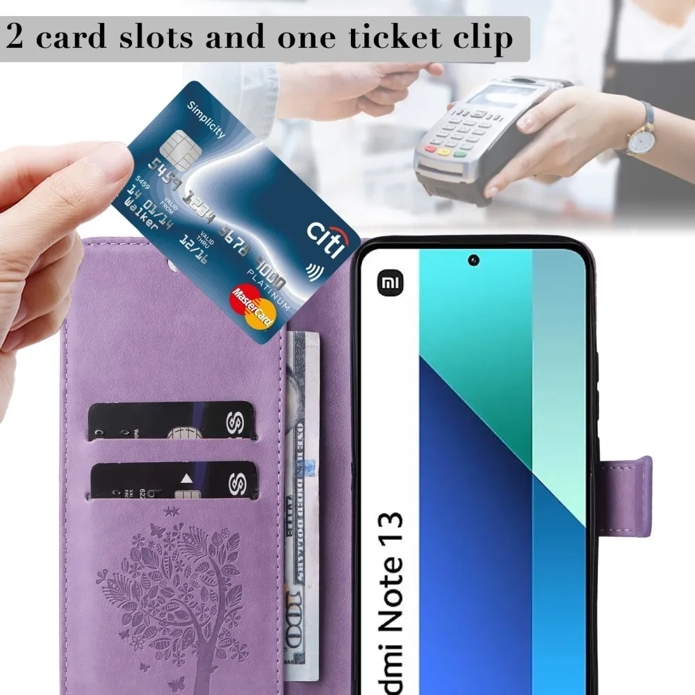 Világos lila pénztárca tok Trees a Xiaomi Redmi Note 13-hoz