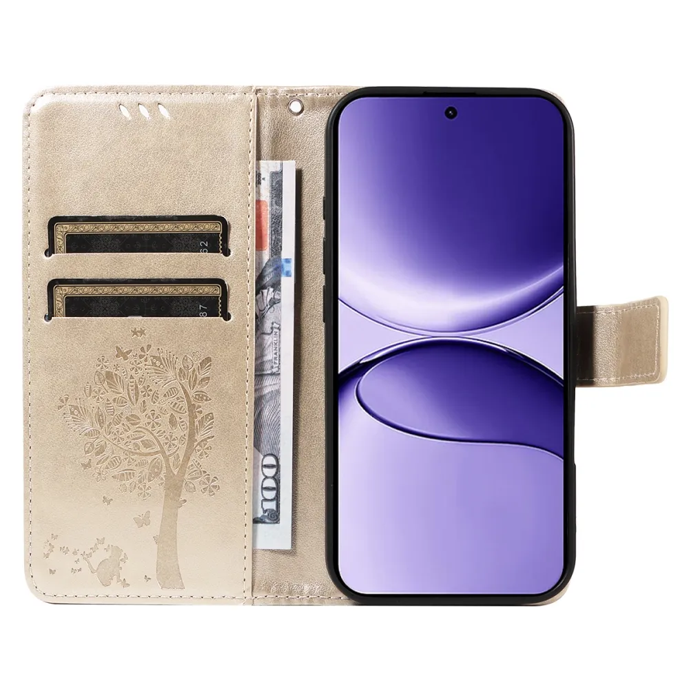 Arany pénztárca tok fák a Xiaomi Poco F7 5G-hez