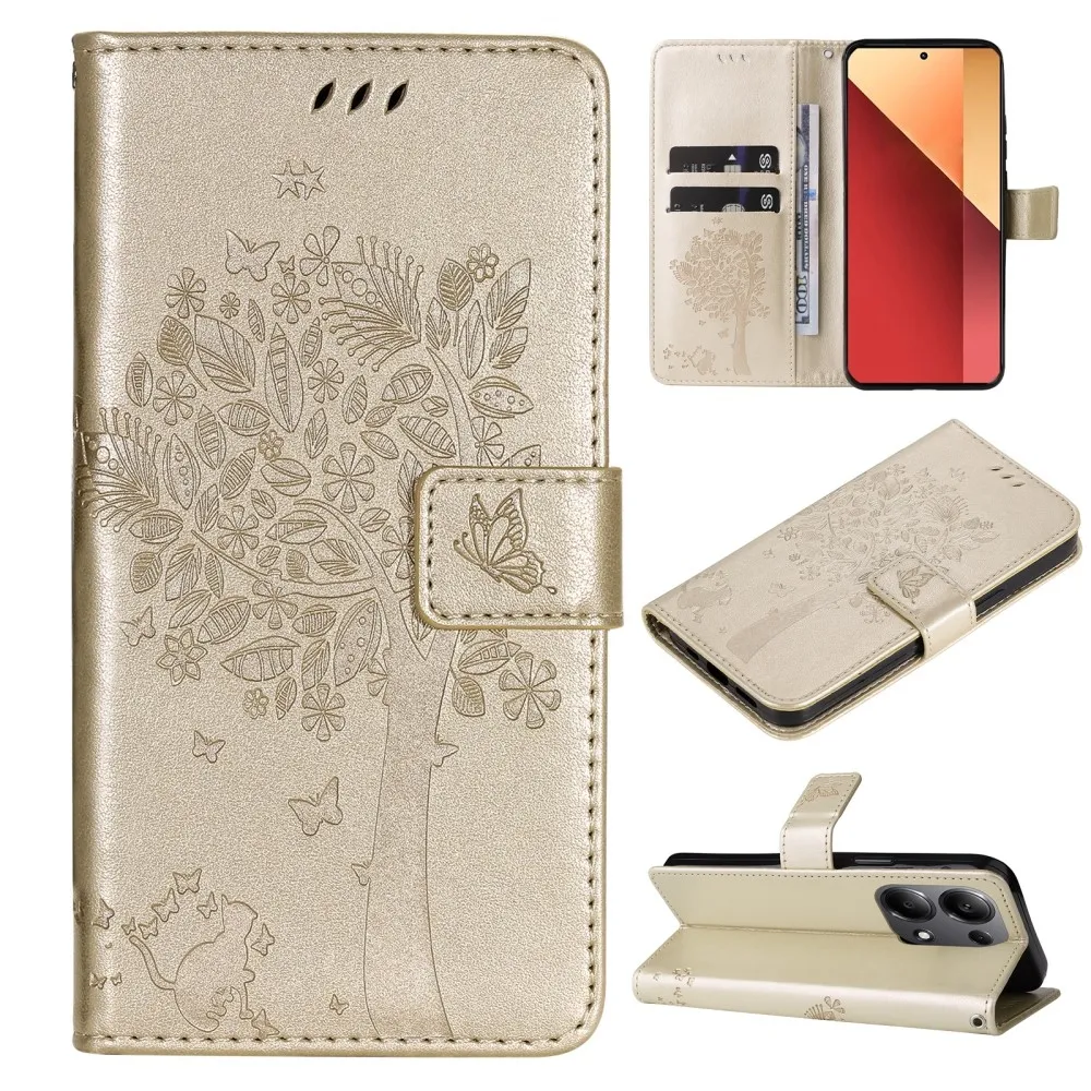 Arany pénztárca tok fák Xiaomi Redmi Note 13 Pro 4G/Poco M6 Pro számára