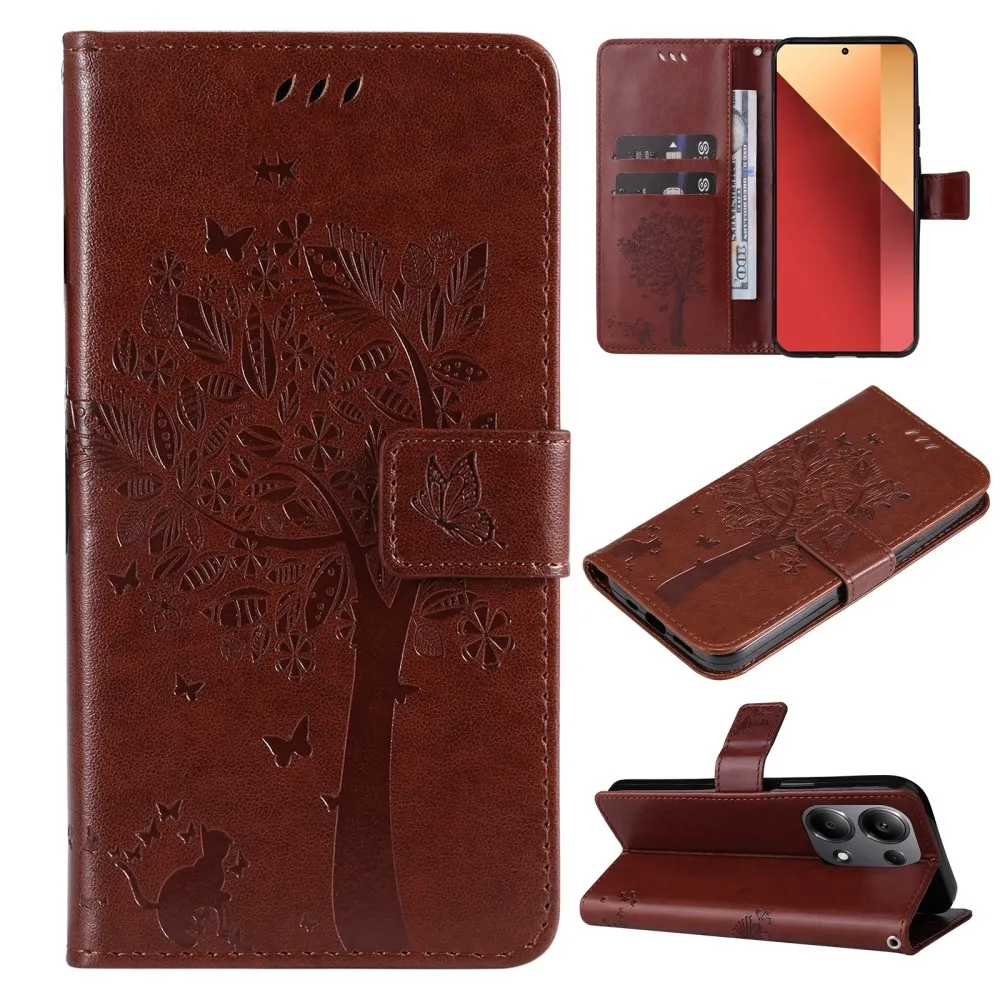 Barna pénztárca tok Fák Xiaomi Redmi Note 13 Pro 4G/Poco M6 Pro számára