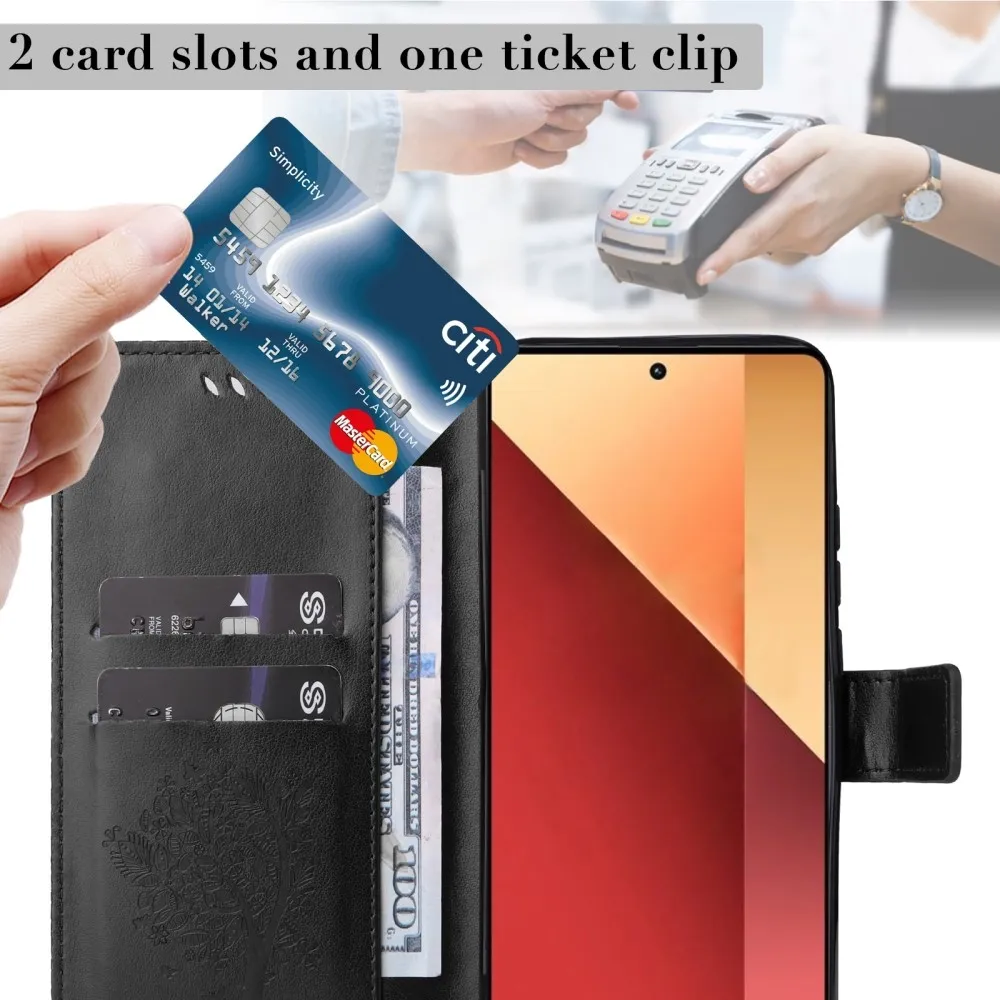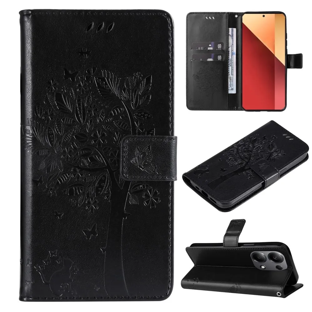 Fekete pénztárca tok Trees for Xiaomi Redmi Note 13 Pro 4G/Poco M6 Pro
