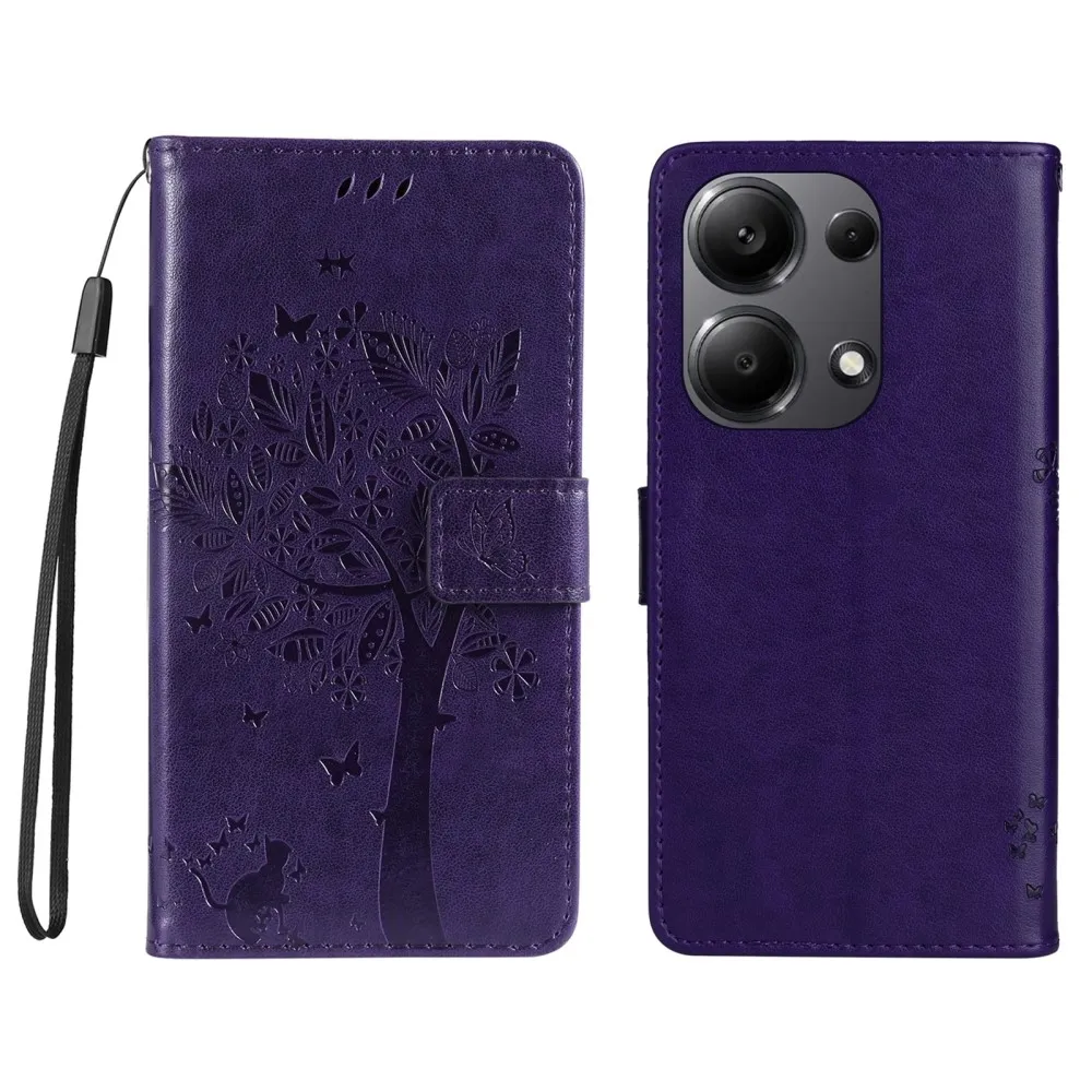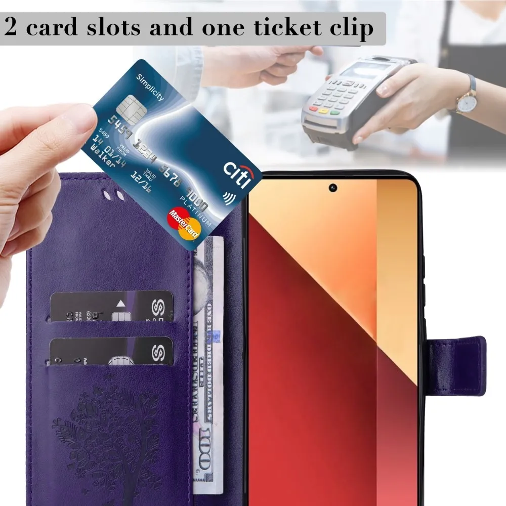 Sötét lila fák pénztárca tok Xiaomi Redmi Note 13 Pro 4G/Poco M6 Pro számára