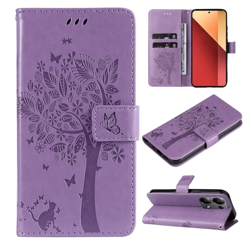 Világos lila pénztárca tok Trees for Xiaomi Redmi Note 13 Pro 4G/Poco M6 Pro