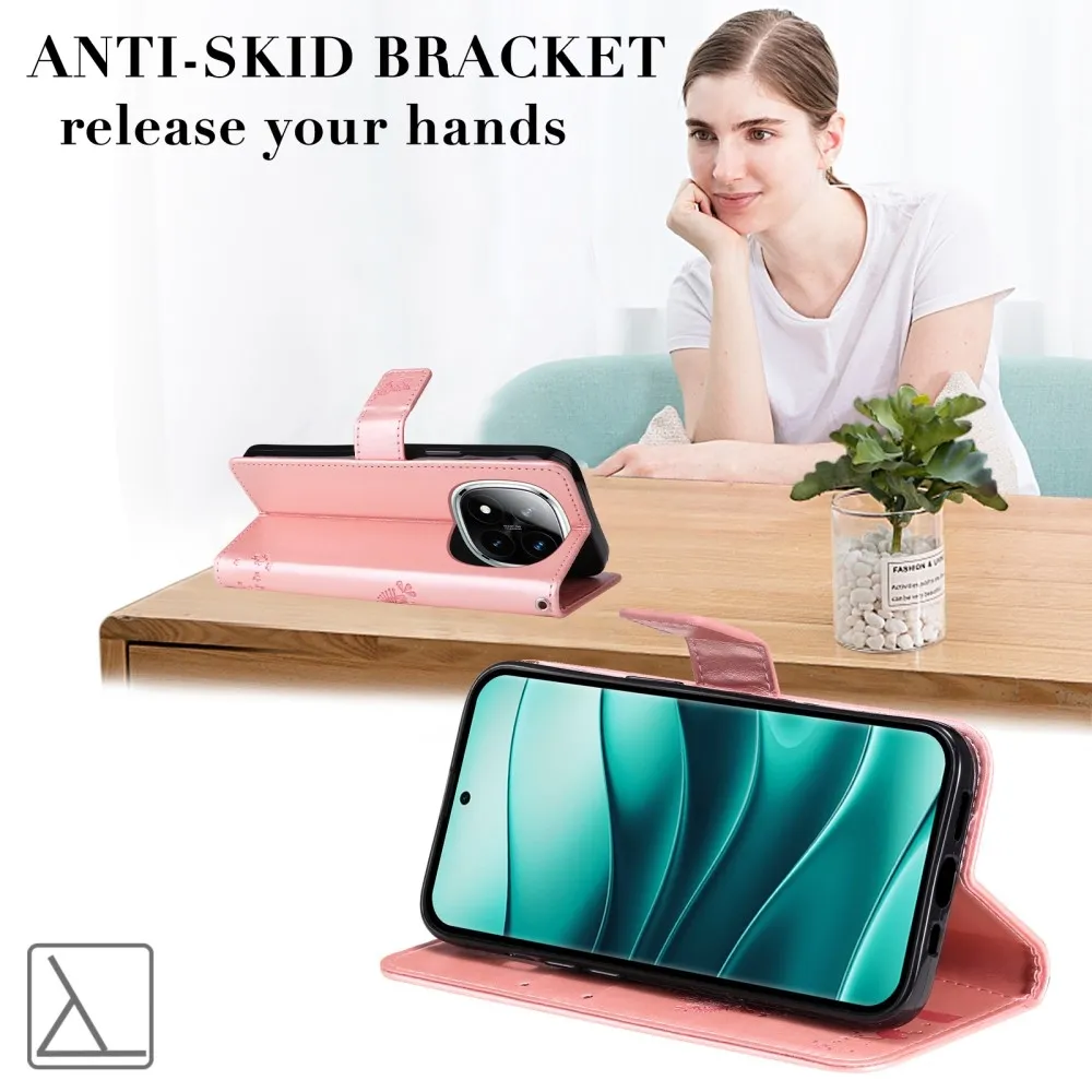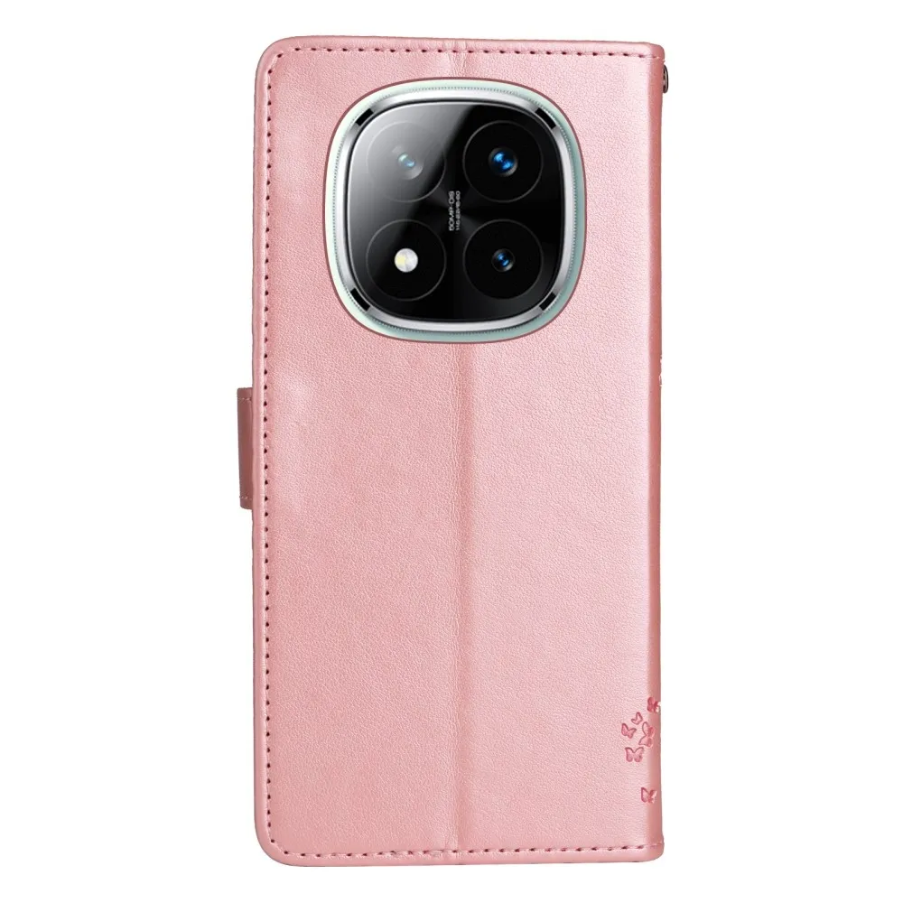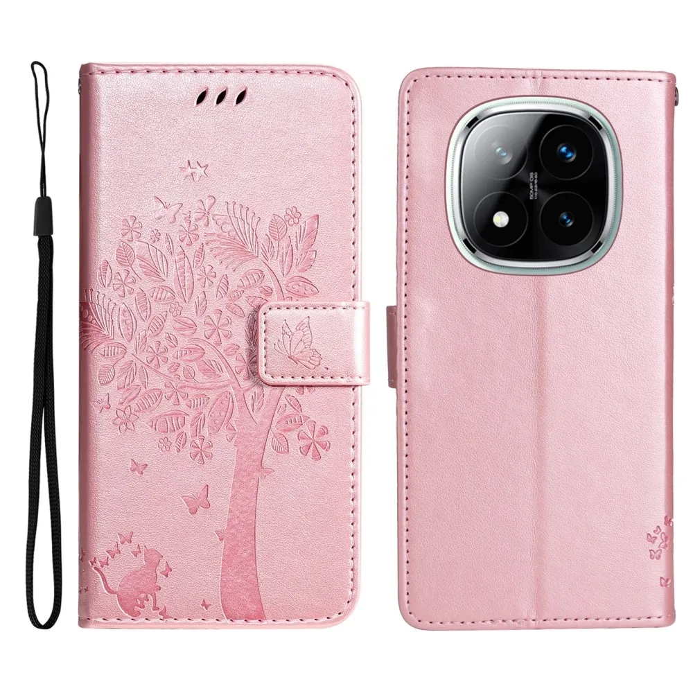 Rózsaarany fák pénztárca tok Xiaomi Redmi Note 14 Pro 5G/Poco X7 5G/Note 14 Pro+ 5G számára
