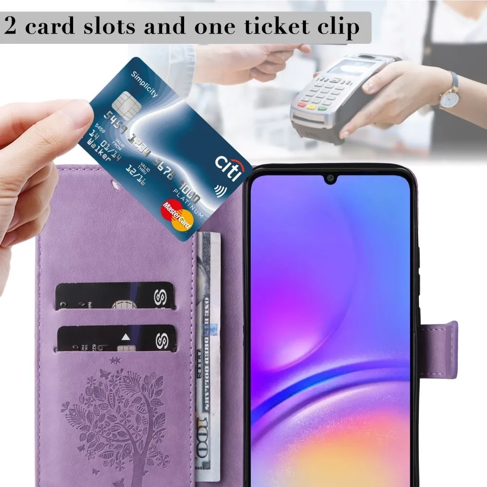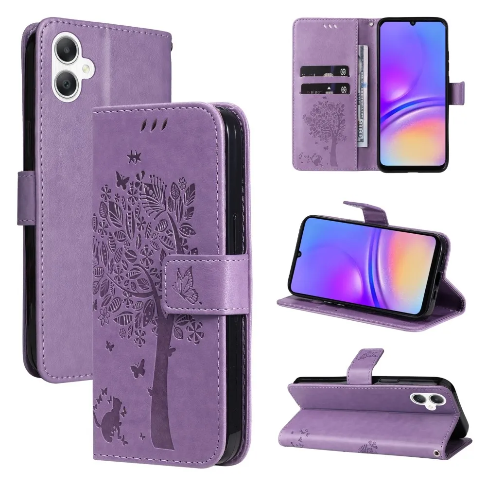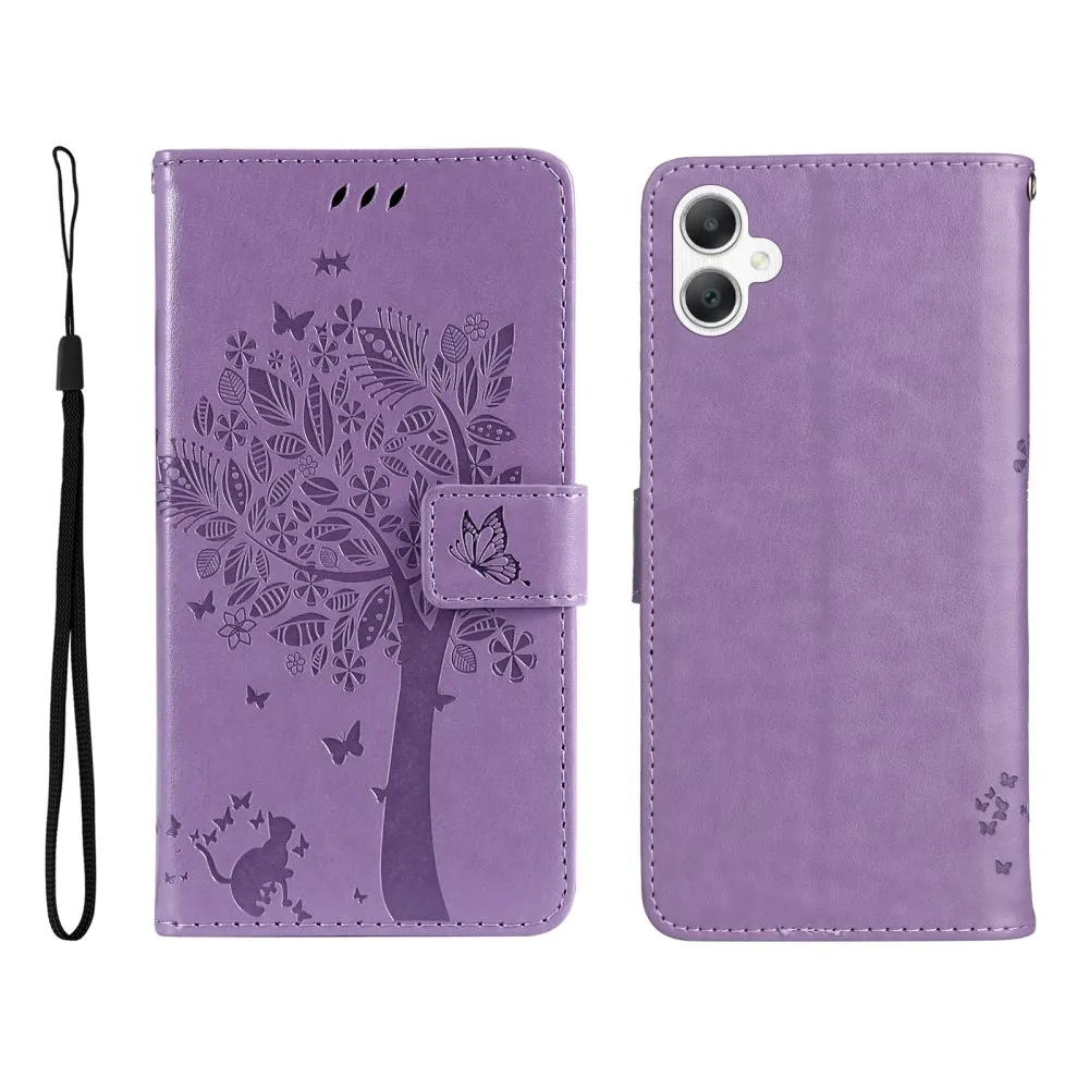 Világos lila Trees pénztárca tok Samsung Galaxy A06 4G-hez