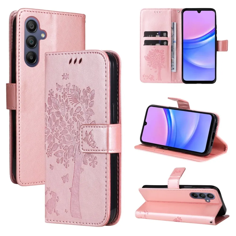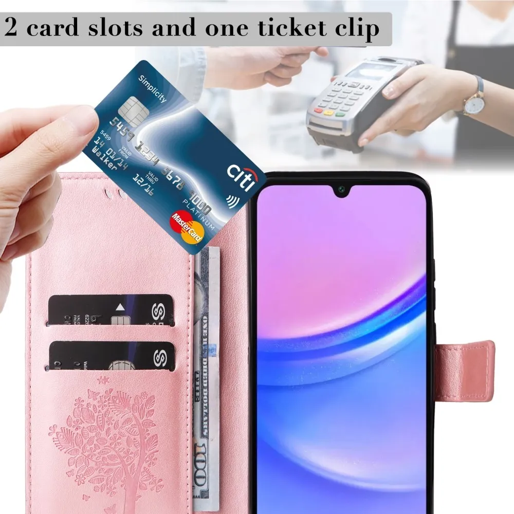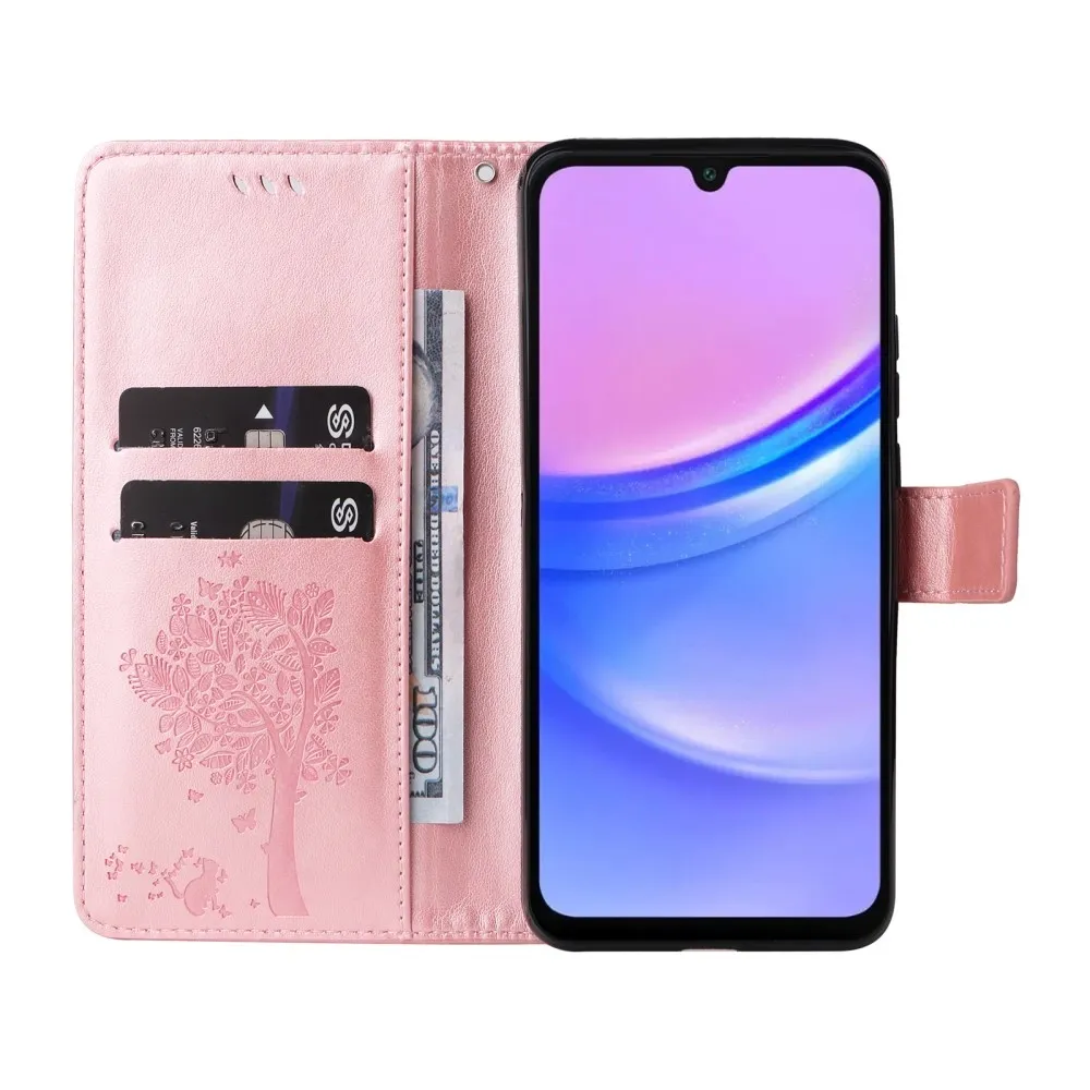 Rózsaszín és arany Trees pénztárca tok Samsung Galaxy A16 4G/5G/A26 5G számára