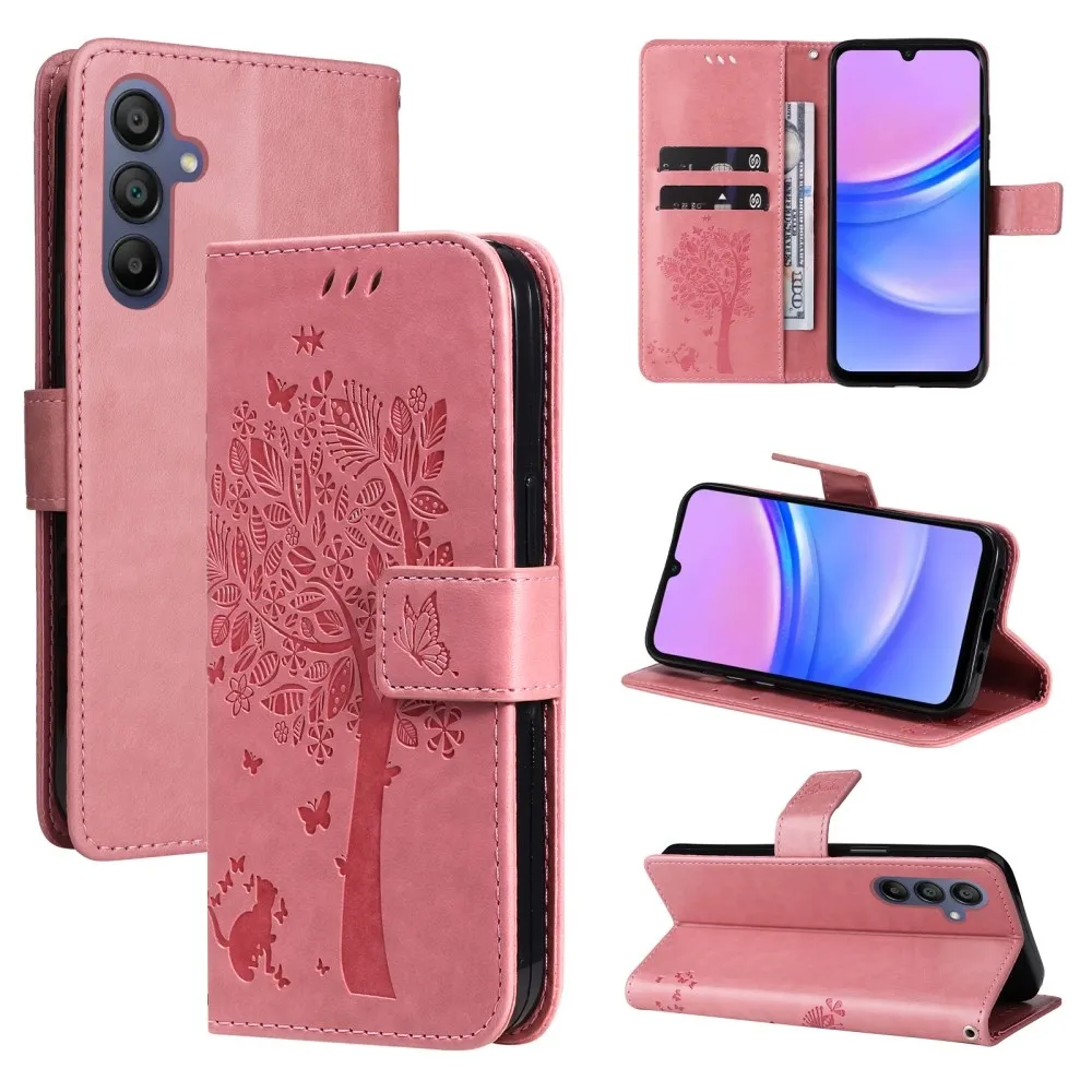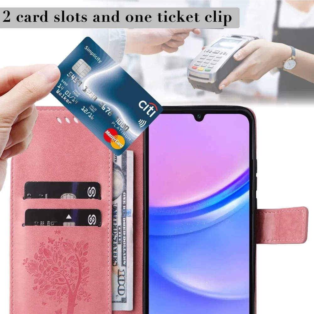 Rózsaszín pénztárca tok Trees a Samsung Galaxy A16 4G/5G/A26 5G számára