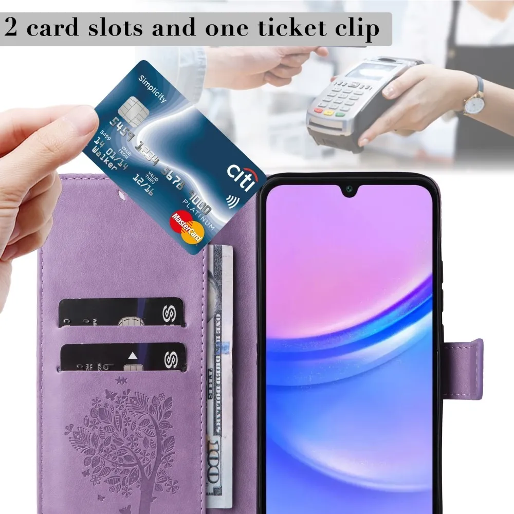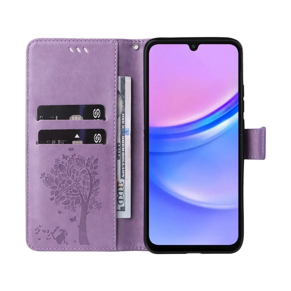 Világos lila fák pénztárca tok Samsung Galaxy A16 4G/5G/A26 5G számára