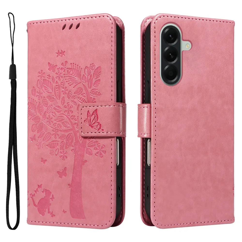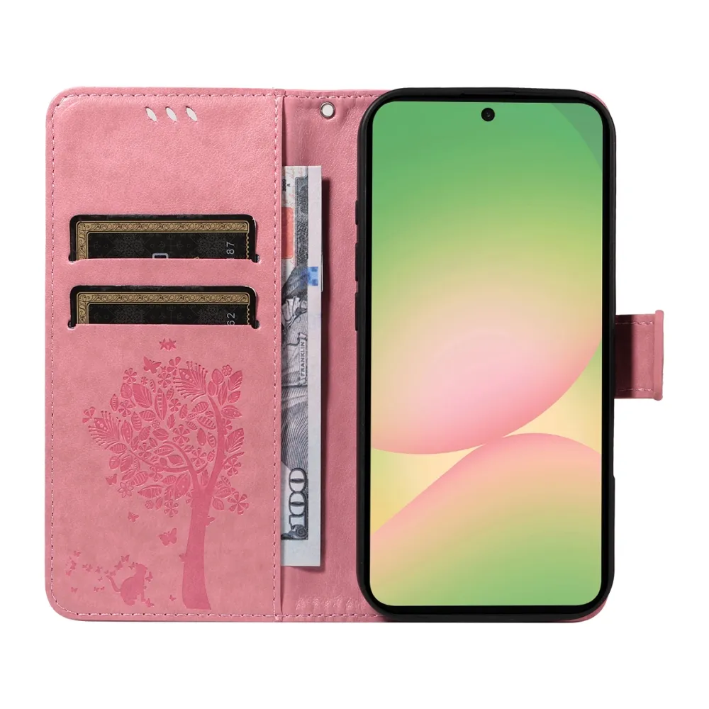 Rózsaszín pénztárca tok fák Samsung Galaxy A57 5G-hez