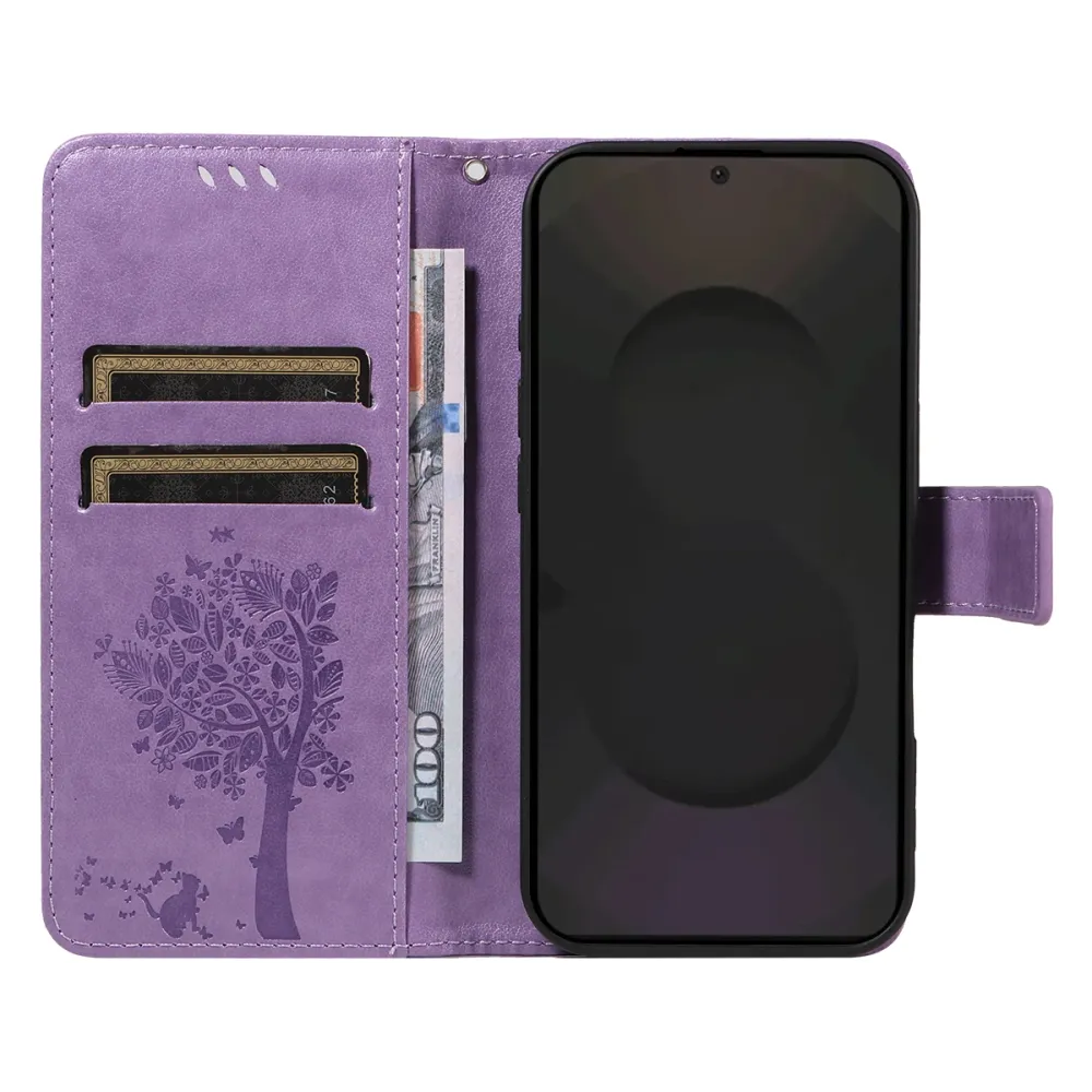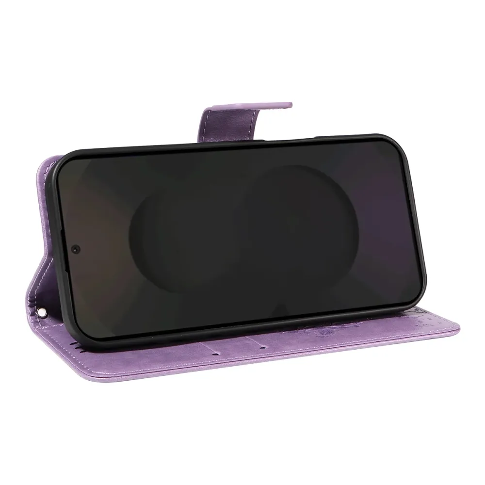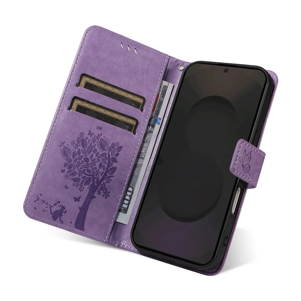 Világos lila Trees pénztárca tok Samsung Galaxy S25 FE számára