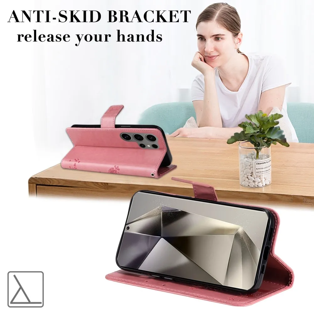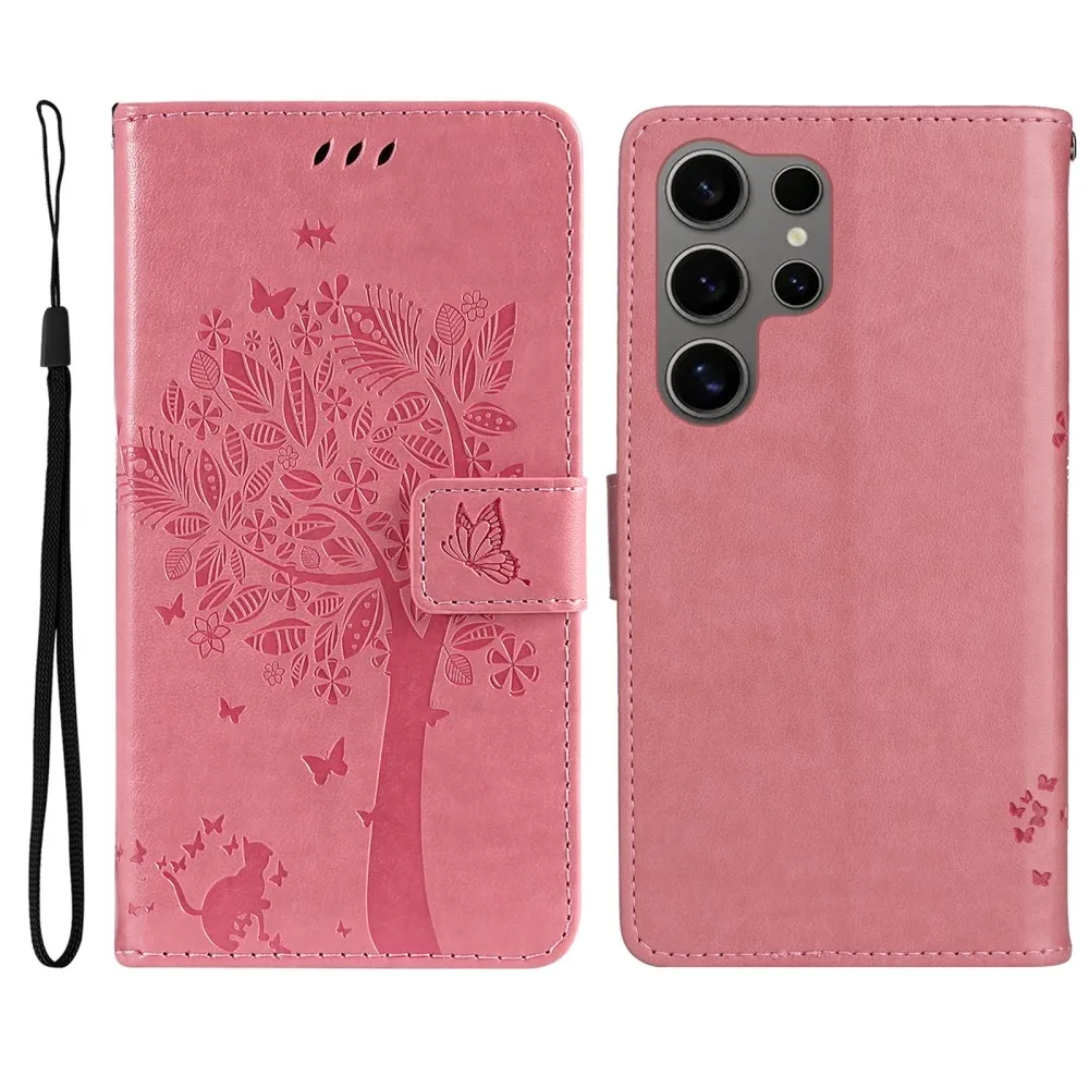 Rózsaszín pénztárca tok Trees a Samsung Galaxy S25 Ultra készülékhez
