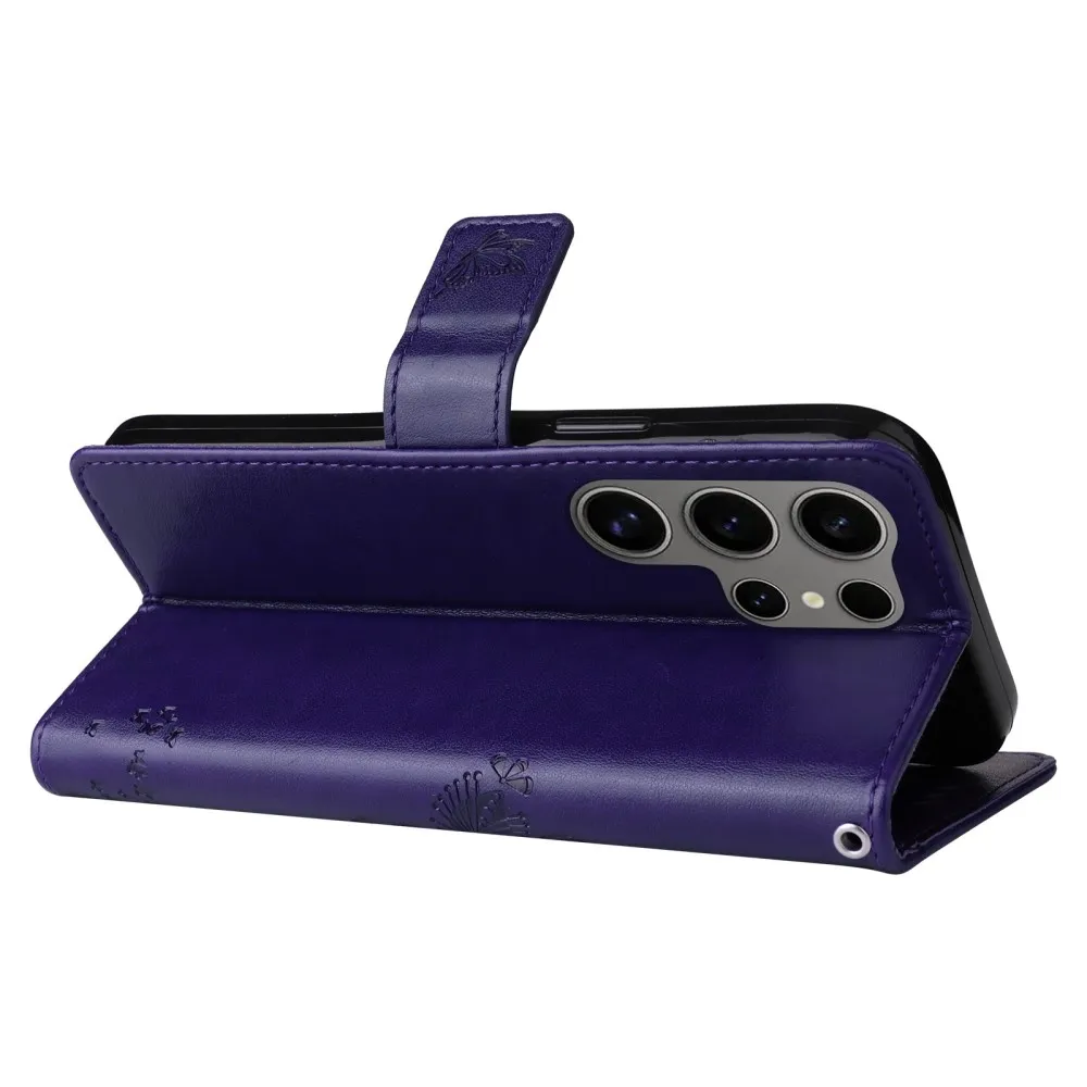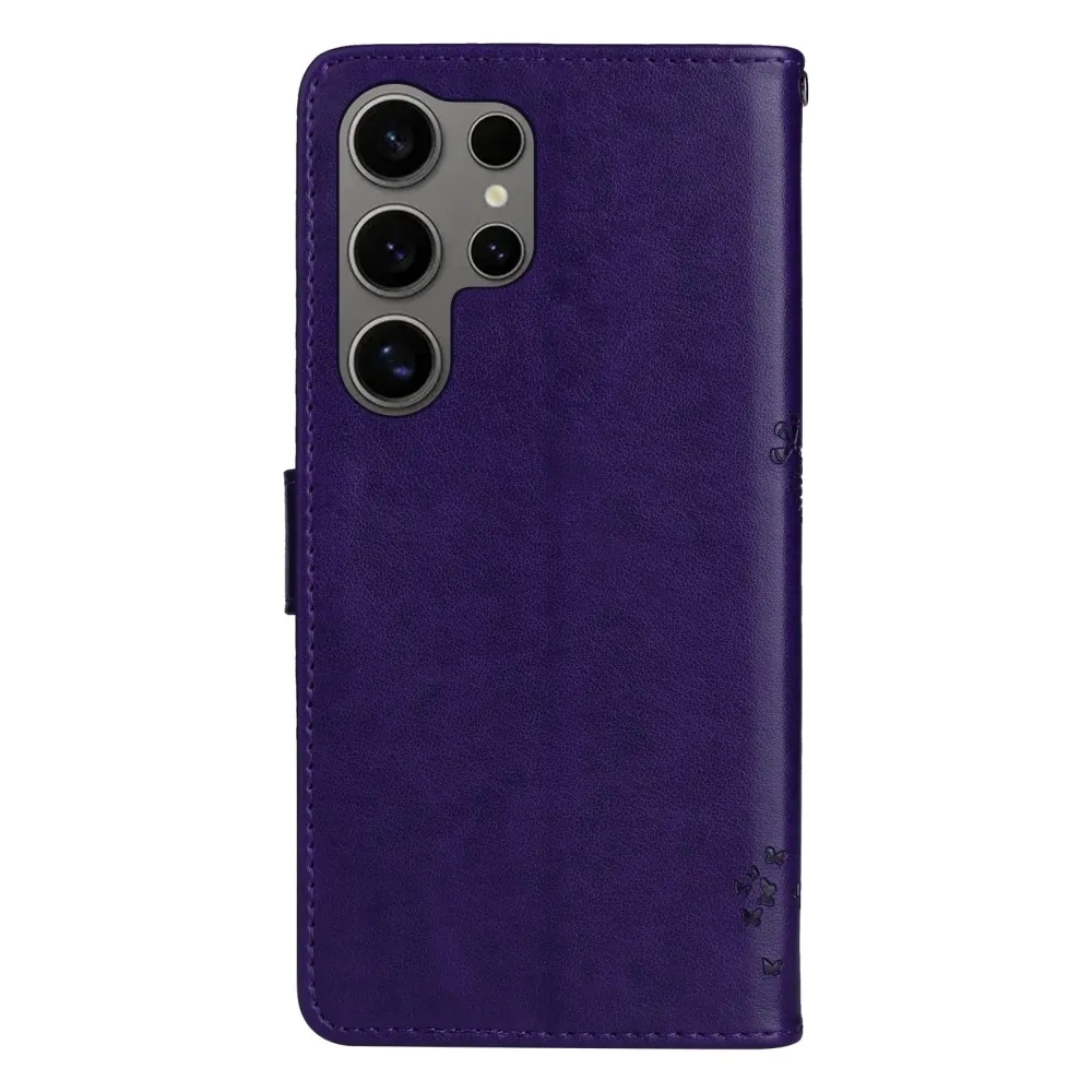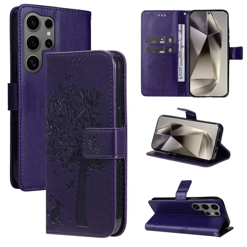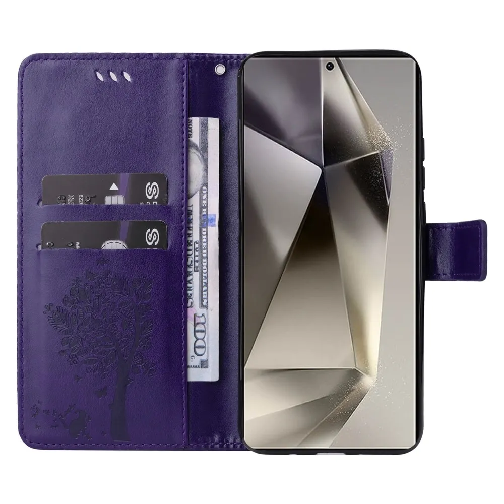 Sötétlila Trees pénztárca tok Samsung Galaxy S25 Ultra számára