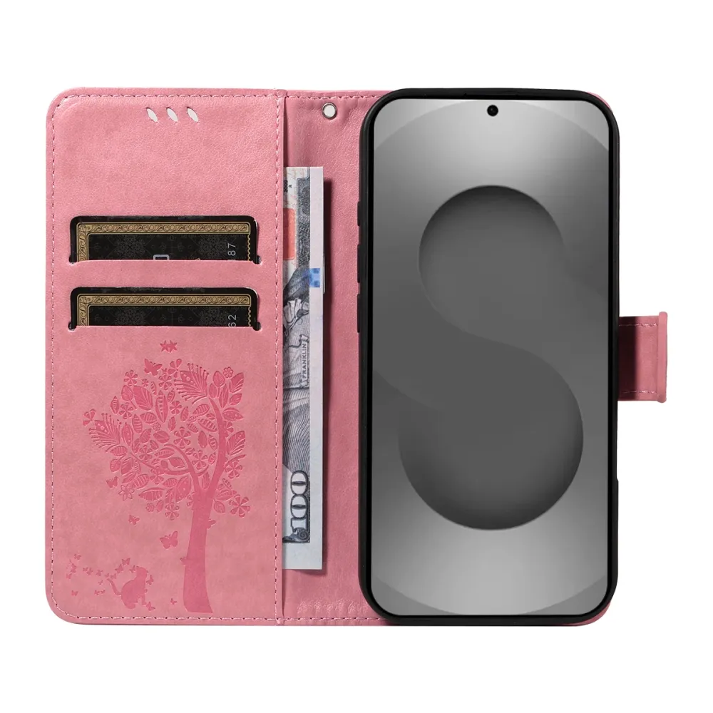 Rózsaszín pénztárca tok Trees a Samsung Galaxy S26 Ultra készülékhez
