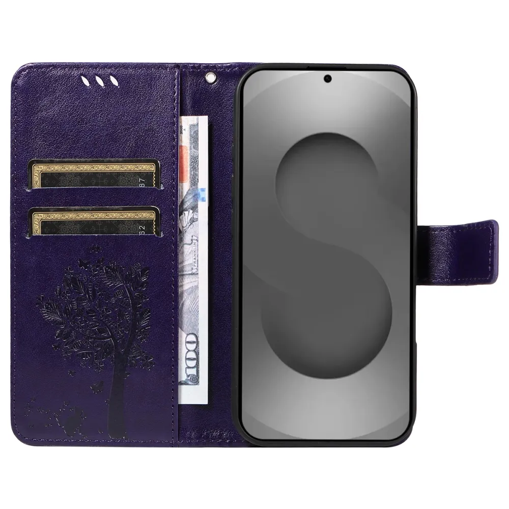 Sötétlila Trees pénztárca tok Samsung Galaxy S26 Ultra számára