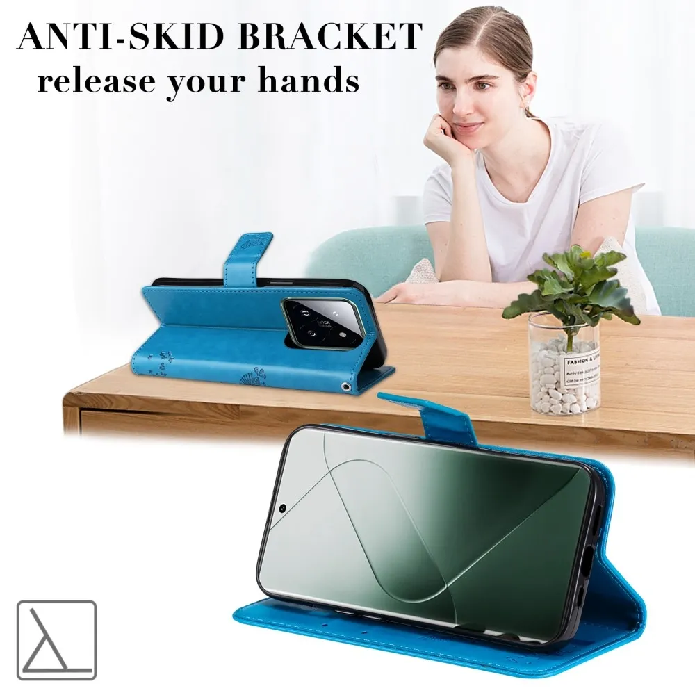 Kék pénztárca tok fák a Xiaomi 14 Pro-hoz