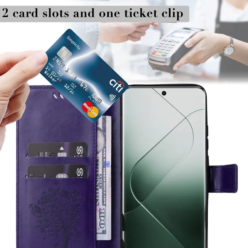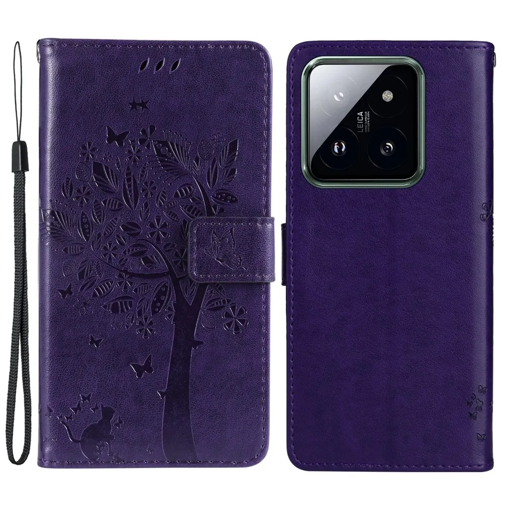 Sötét lila pénztárca tok Trees for Xiaomi 14 Pro