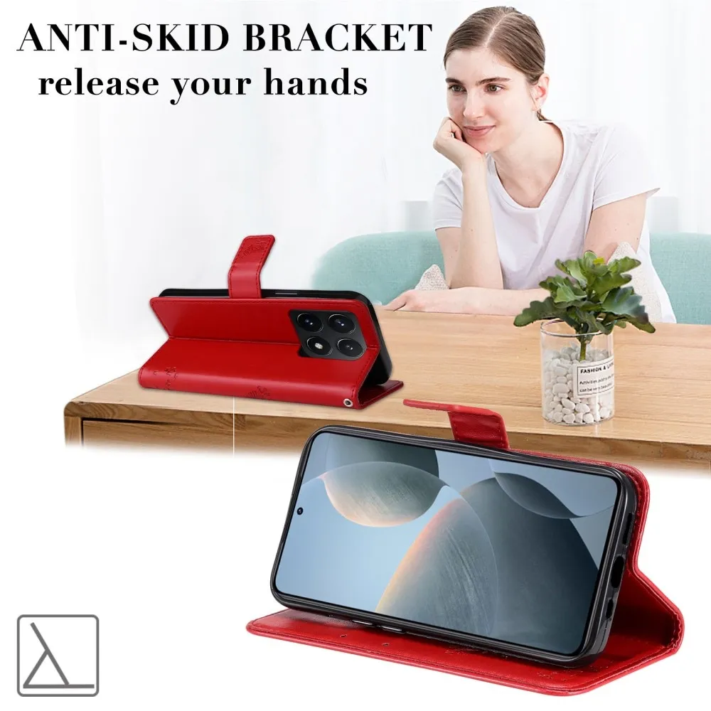 Piros pénztárca tok fák a Xiaomi 14T számára