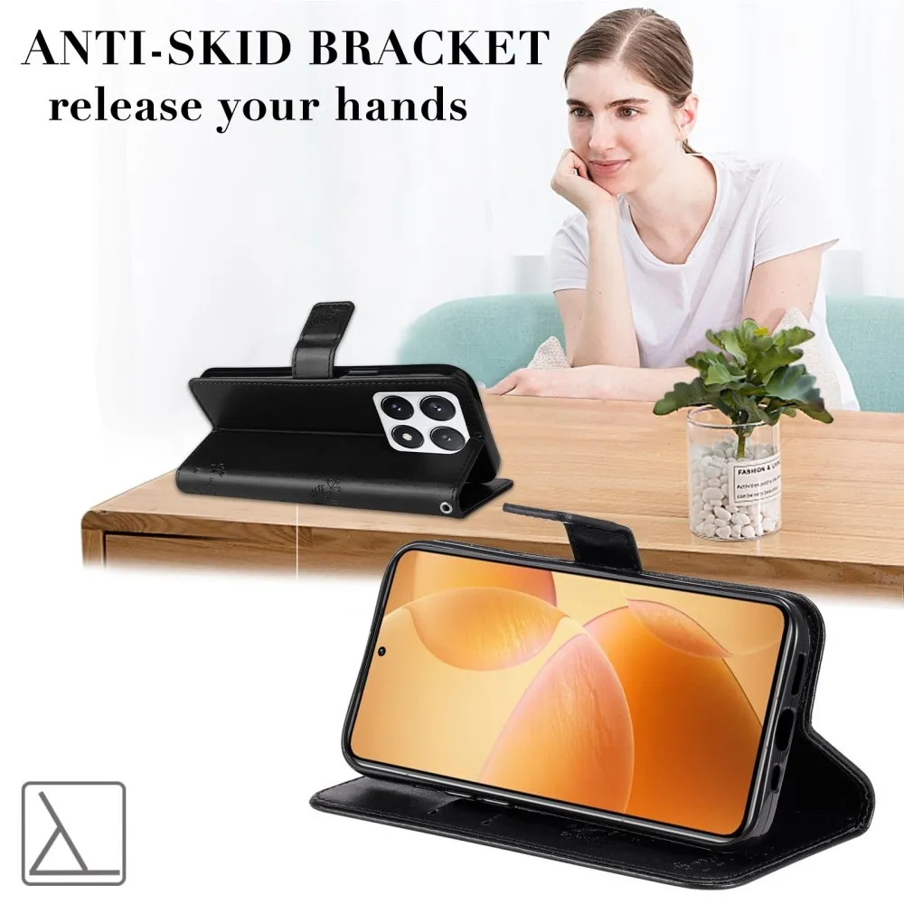 Fekete pénztárca tok fák Xiaomi 14T Pro számára