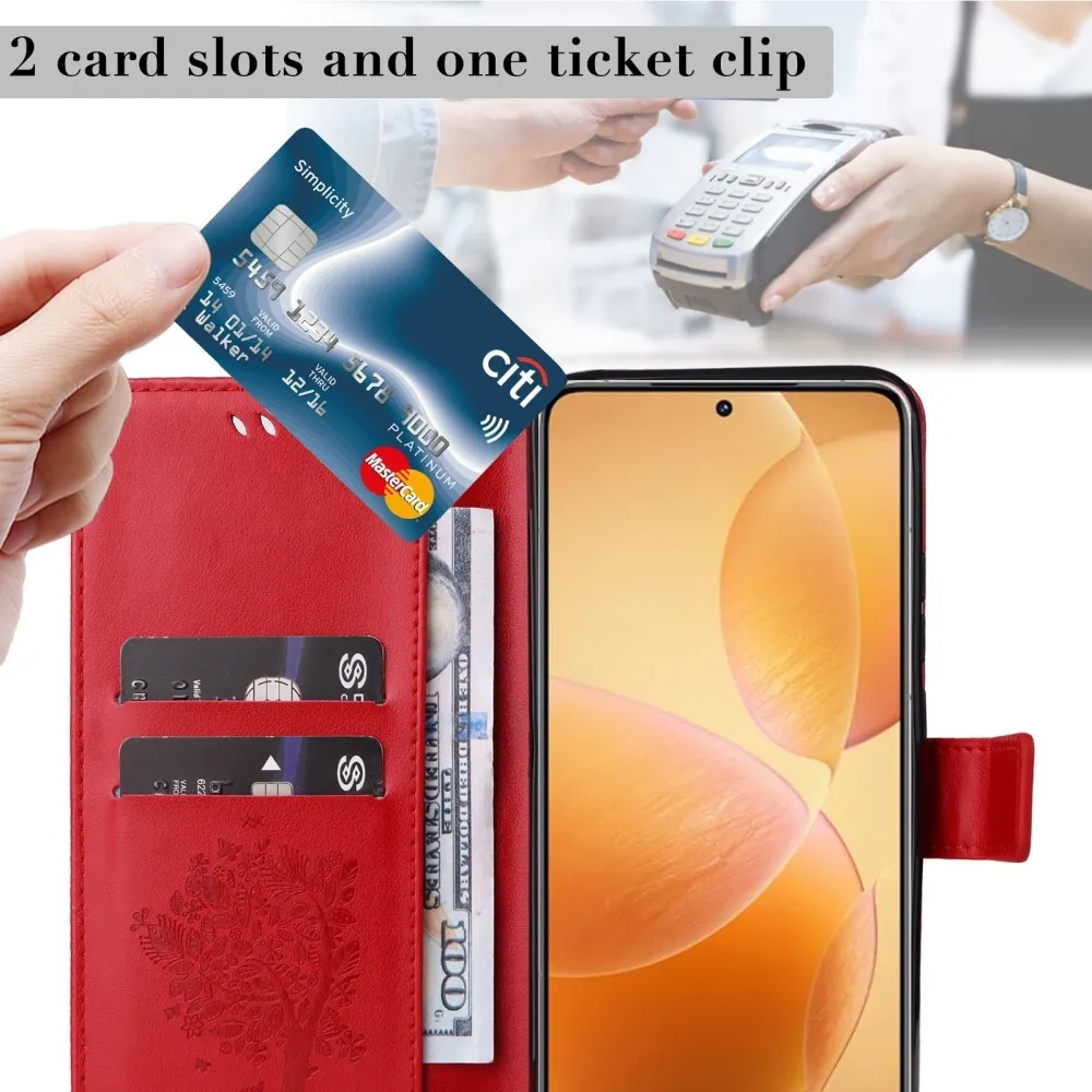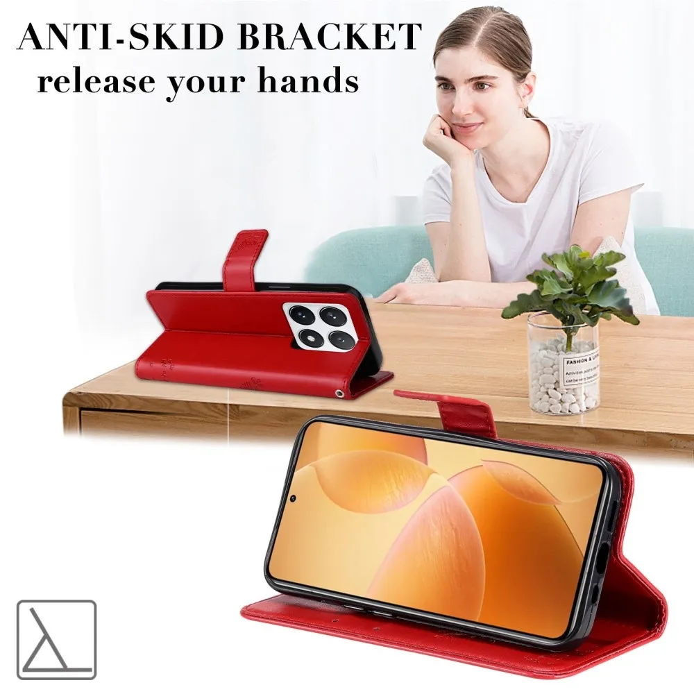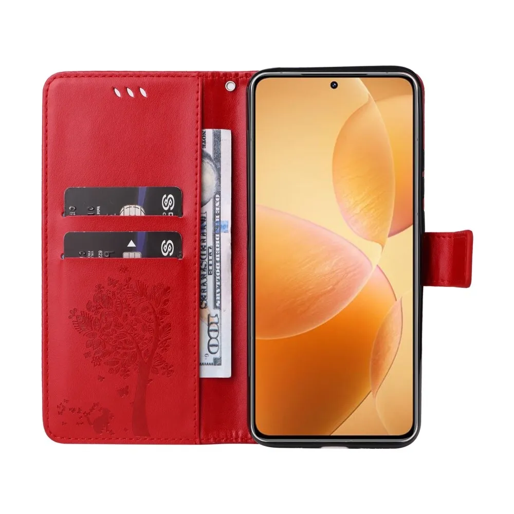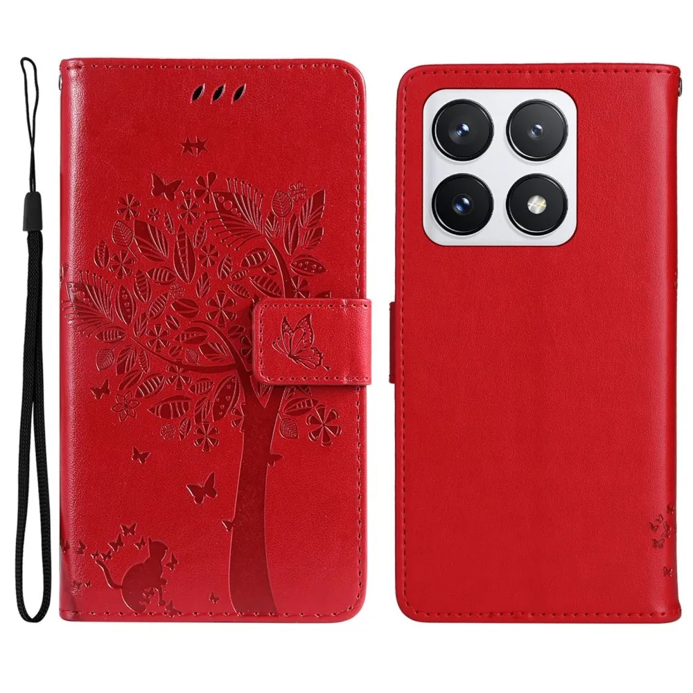 Piros pénztárca tok fák Xiaomi 14T Pro számára