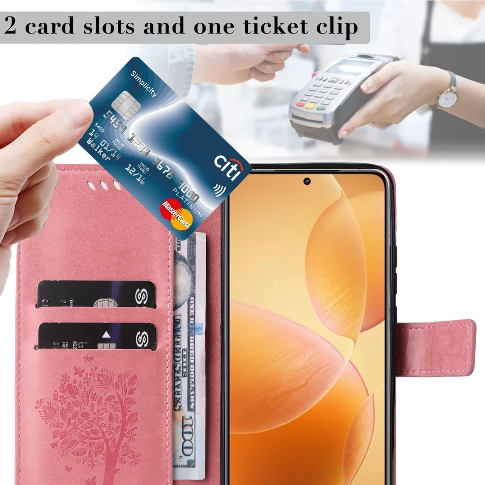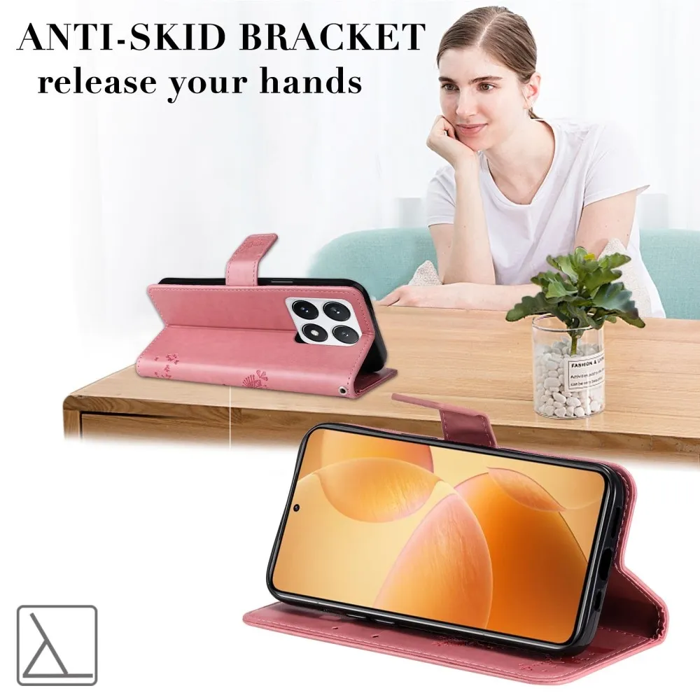 Rózsaszín pénztárca tok fák Xiaomi 14T Pro számára