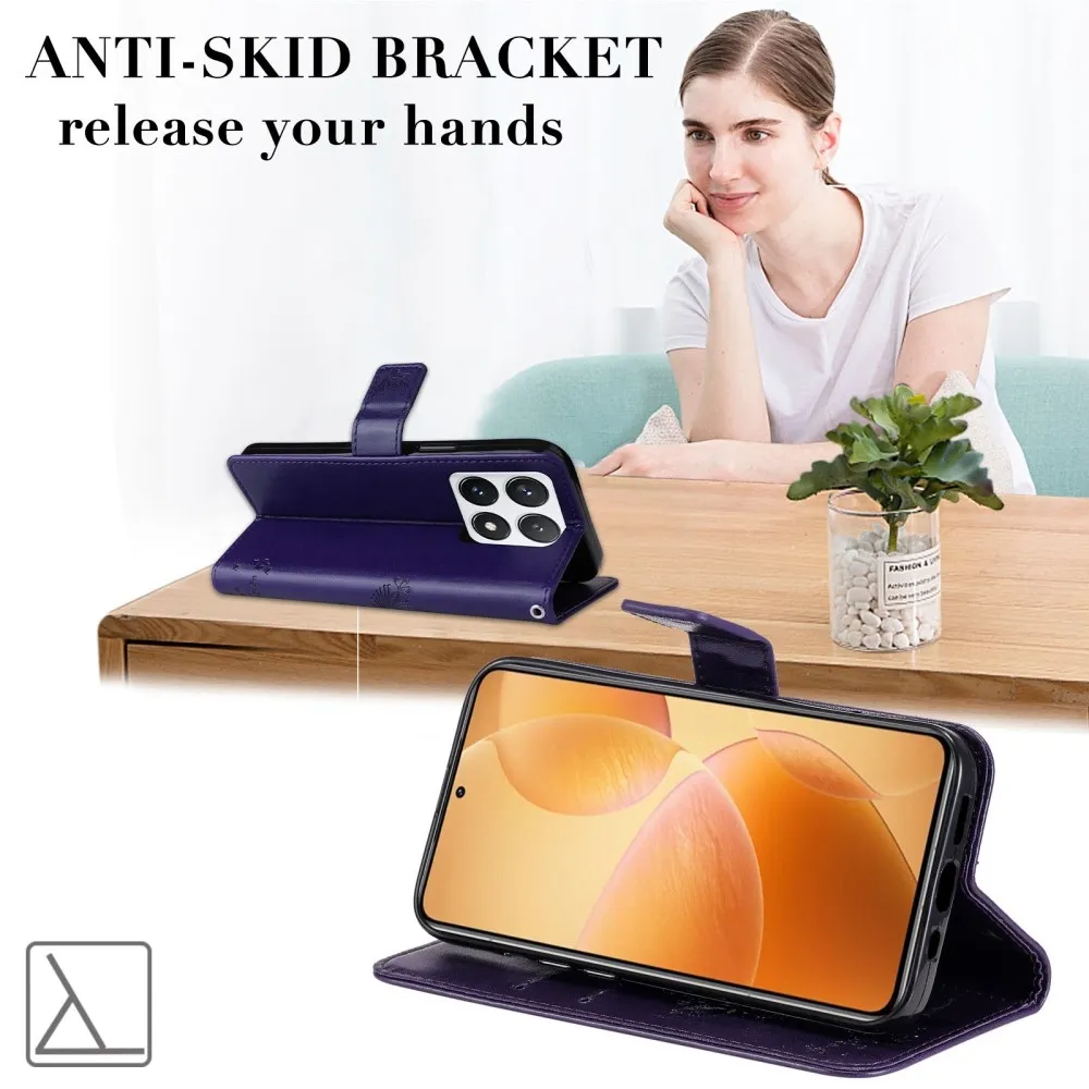 Sötét lila pénztárca tok Trees for Xiaomi 14T Pro