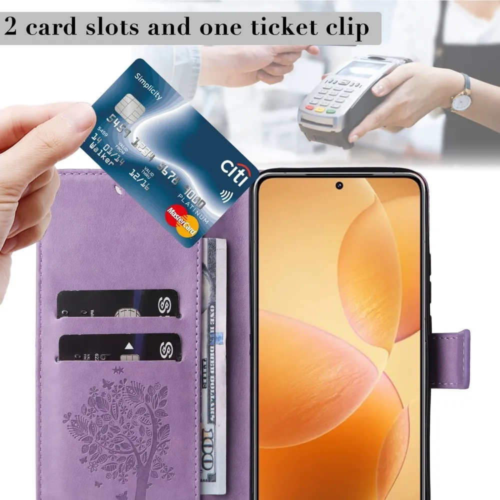 Világos lila pénztárca tok Trees a Xiaomi 14T Pro számára
