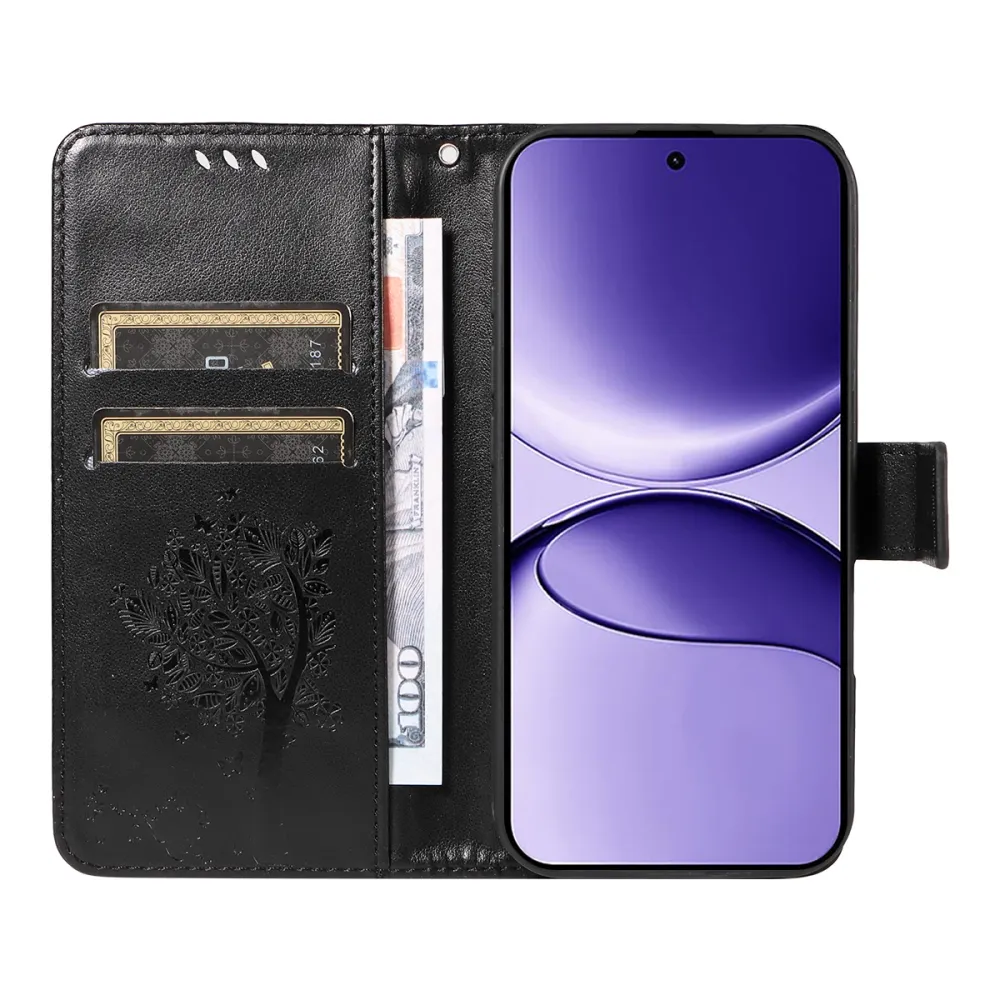 Fekete pénztárca tok fák a Xiaomi Poco F7 5G-hez