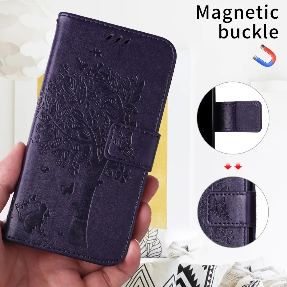 Lila pénztárca tok Trees for Xiaomi Redmi 15 4G (171mm)