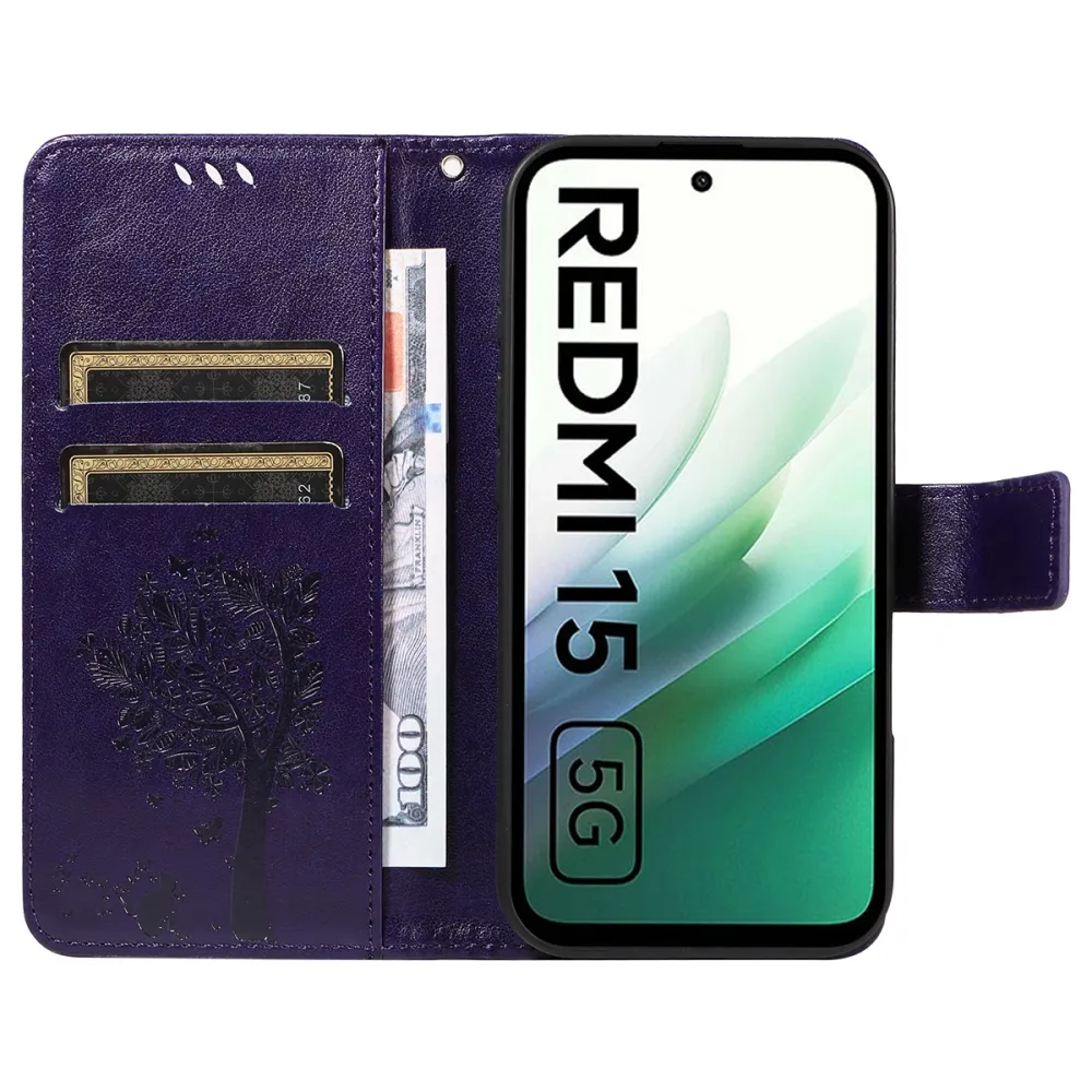 Fák könyve tok Xiaomi Redmi 15 4G (171mm) - lila