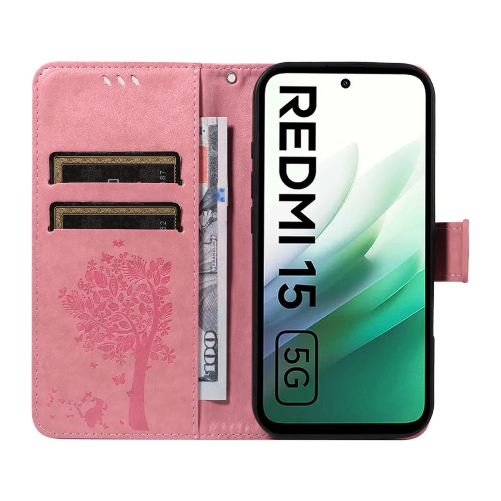 Fák könyve tok Xiaomi Redmi 15 4G (171mm) - rózsaszínű