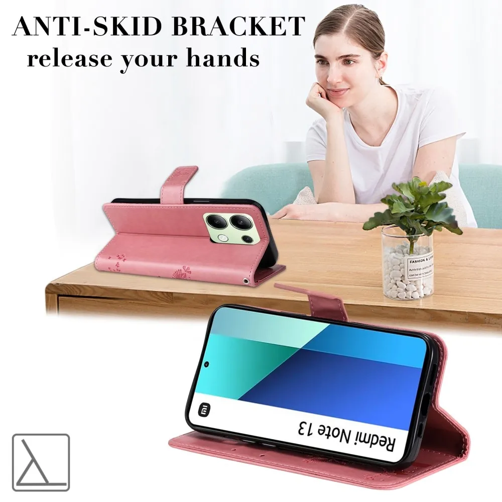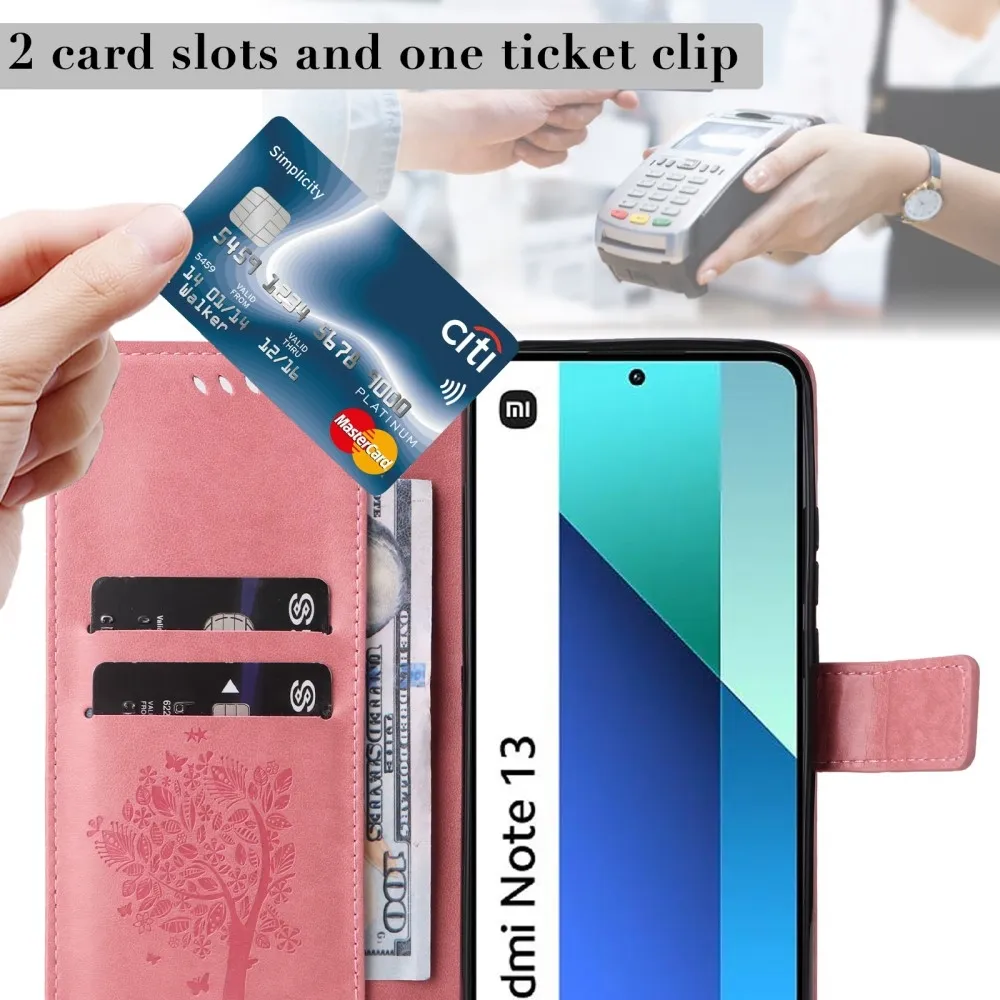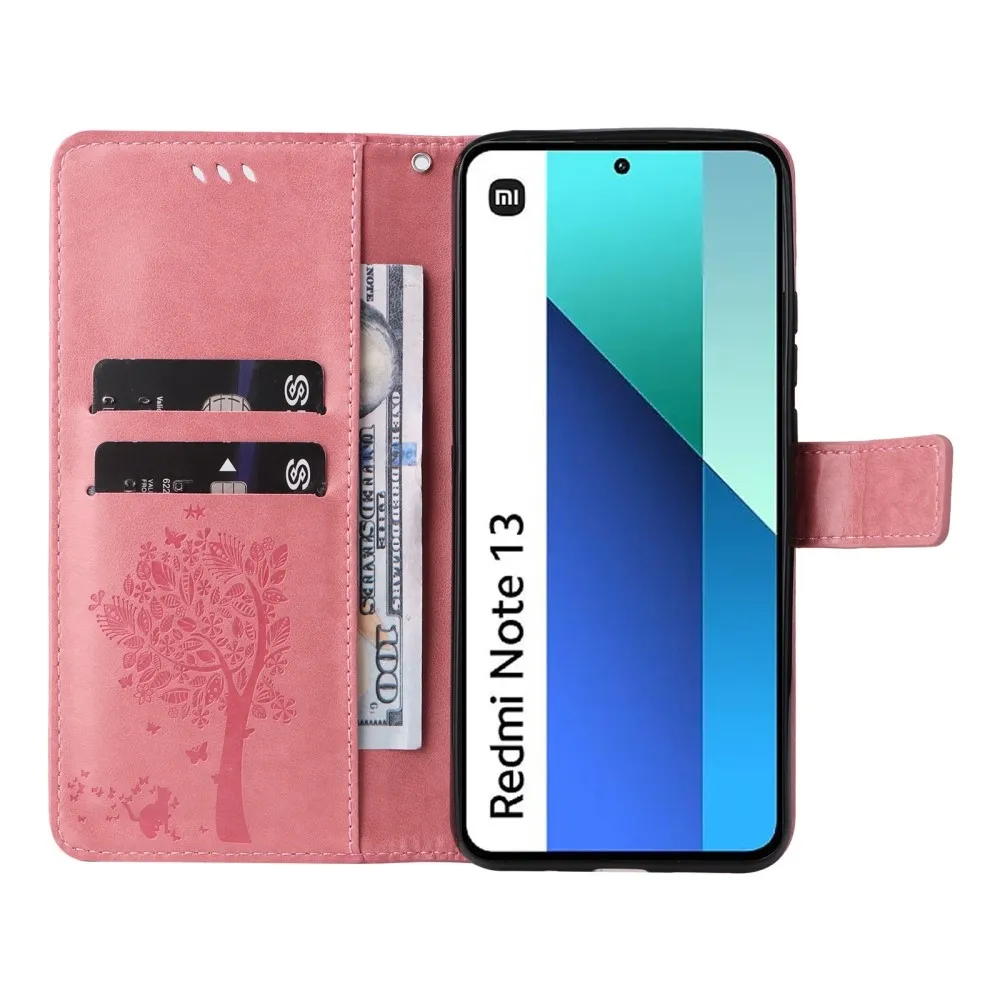 Rózsaszín pénztárca tok fák Xiaomi Redmi Note 13-hoz