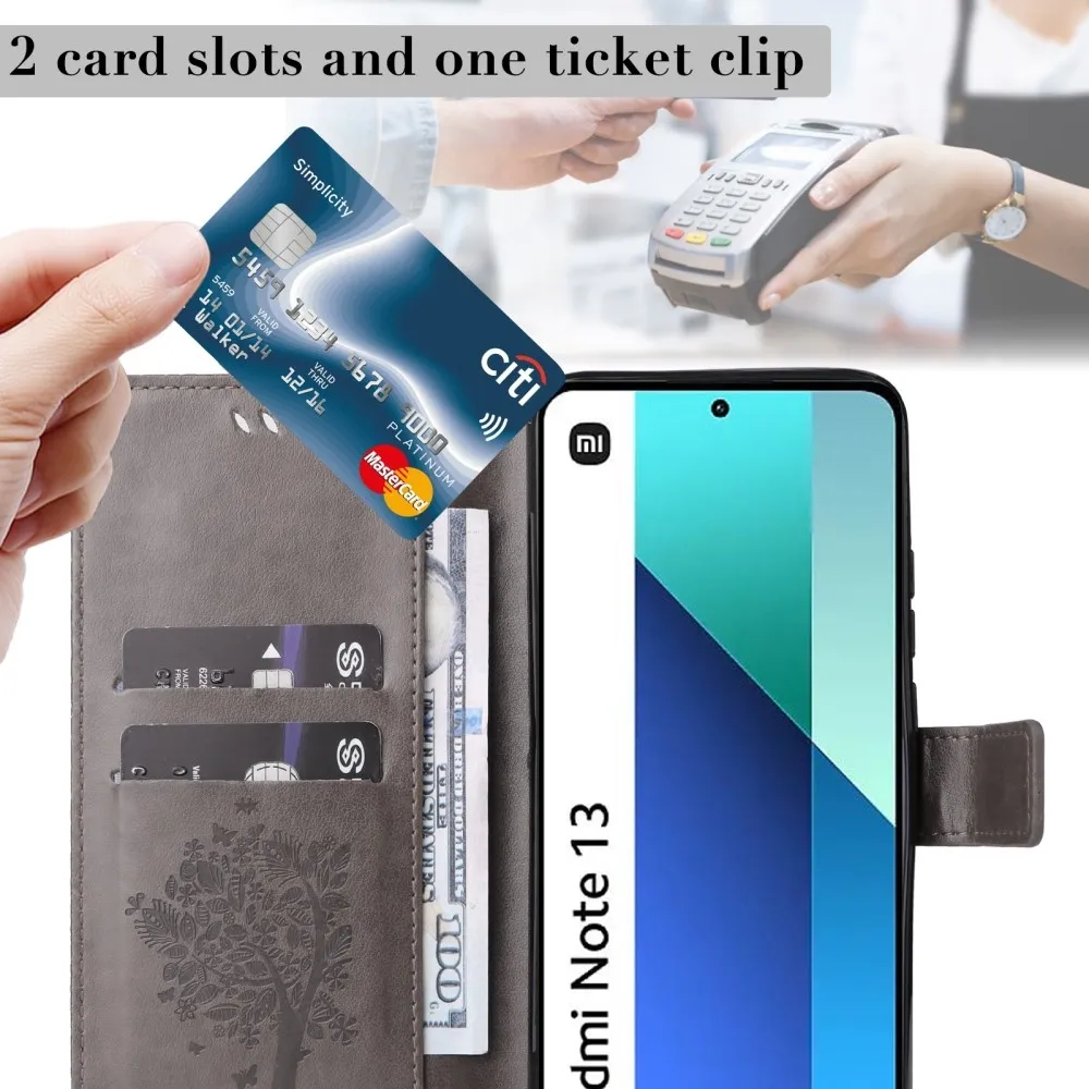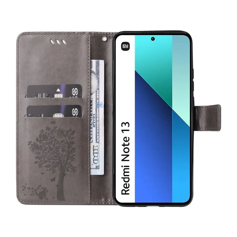 Szürke pénztárca tok fák Xiaomi Redmi Note 13-hoz
