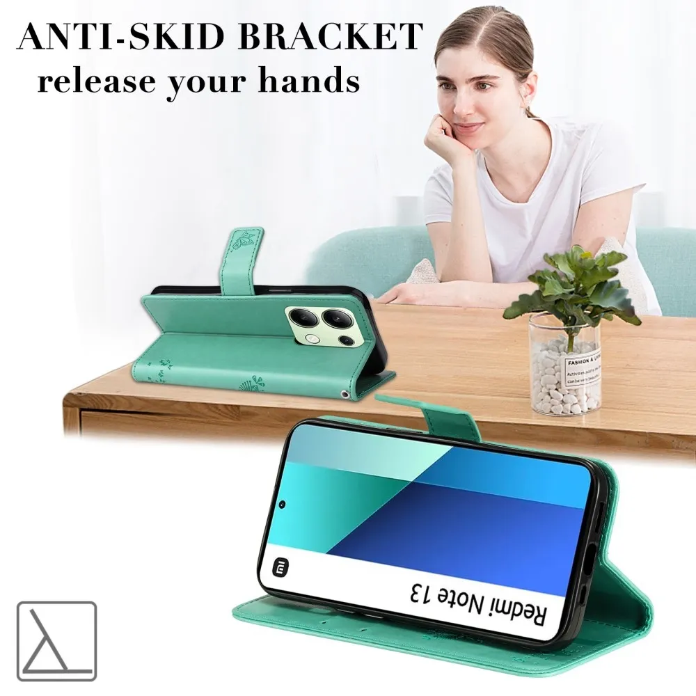 Kék-zöld pénztárca tok Trees a Xiaomi Redmi Note 13-hoz