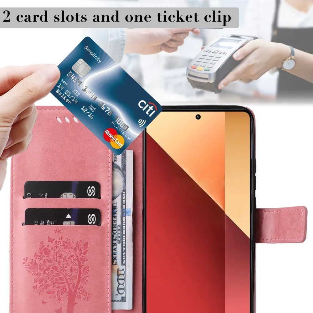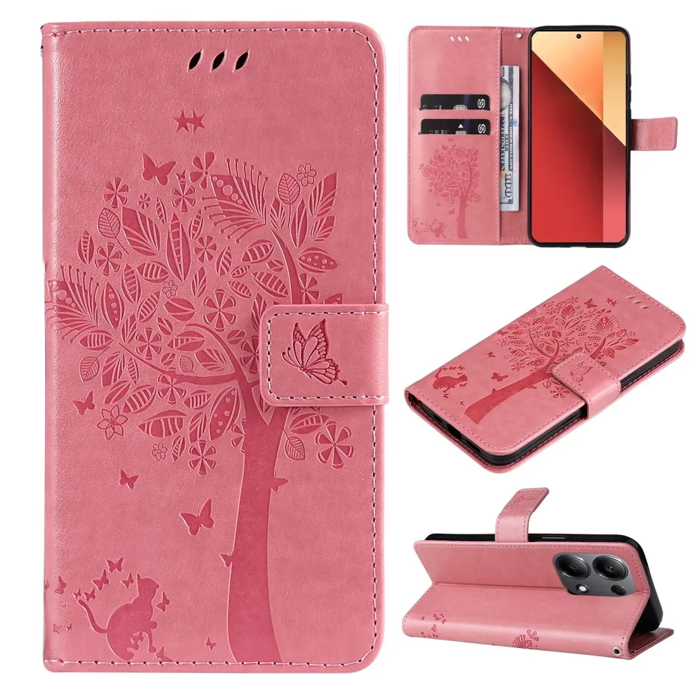 Rózsaszín pénztárca tok fák Xiaomi Redmi Note 13 Pro 4G/Poco M6 Pro-hoz