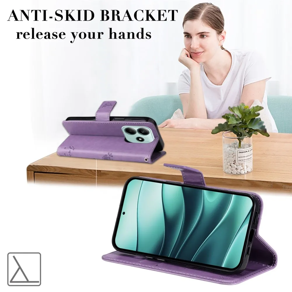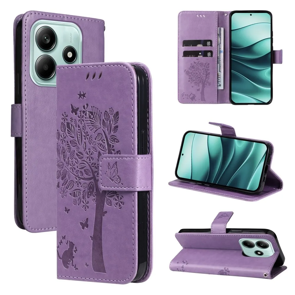 Világos lila pénztárca tok Trees a Xiaomi Redmi Note 14 5G-hez