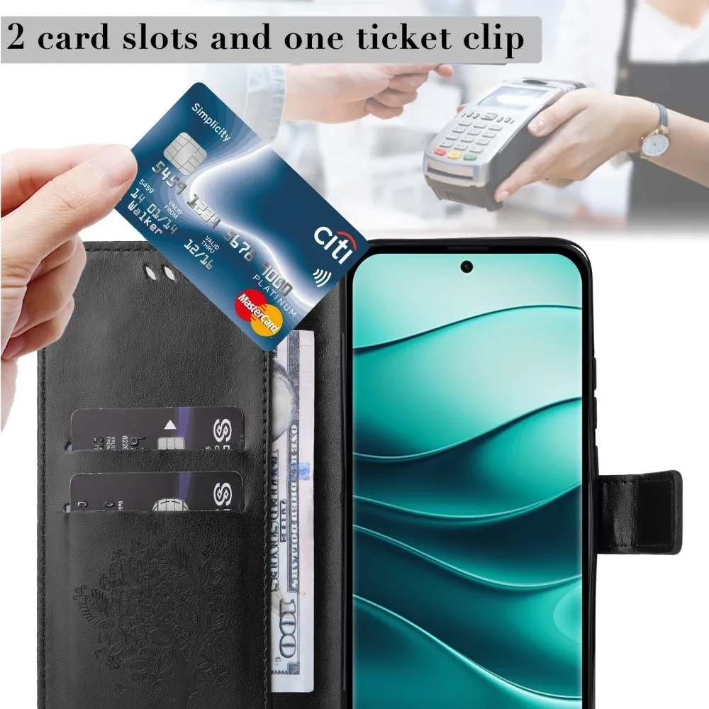 Fekete pénztárca tok Fák Xiaomi Redmi Note 14 Pro 5G/Poco X7 5G/Note 14 Pro+ 5G számára