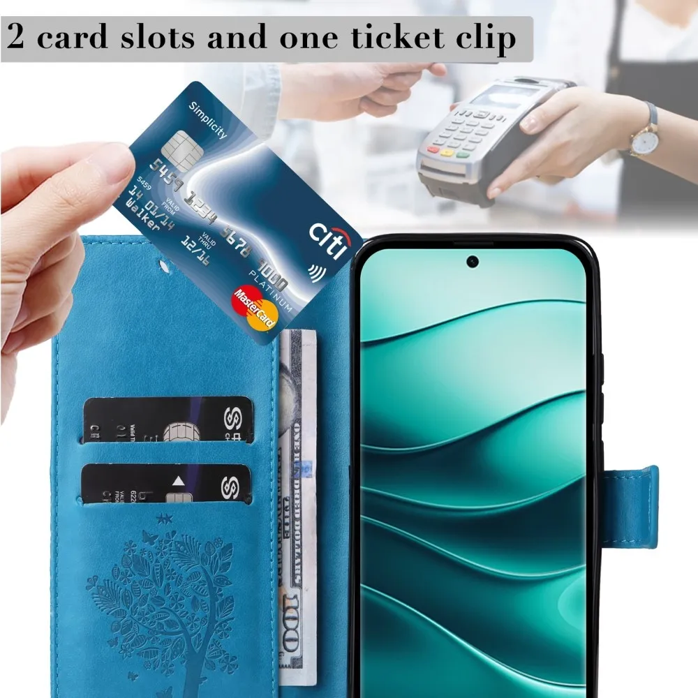 Kék pénztárca tok Fák Xiaomi Redmi Note 14 Pro 5G/Poco X7 5G/Note 14 Pro+ 5G számára