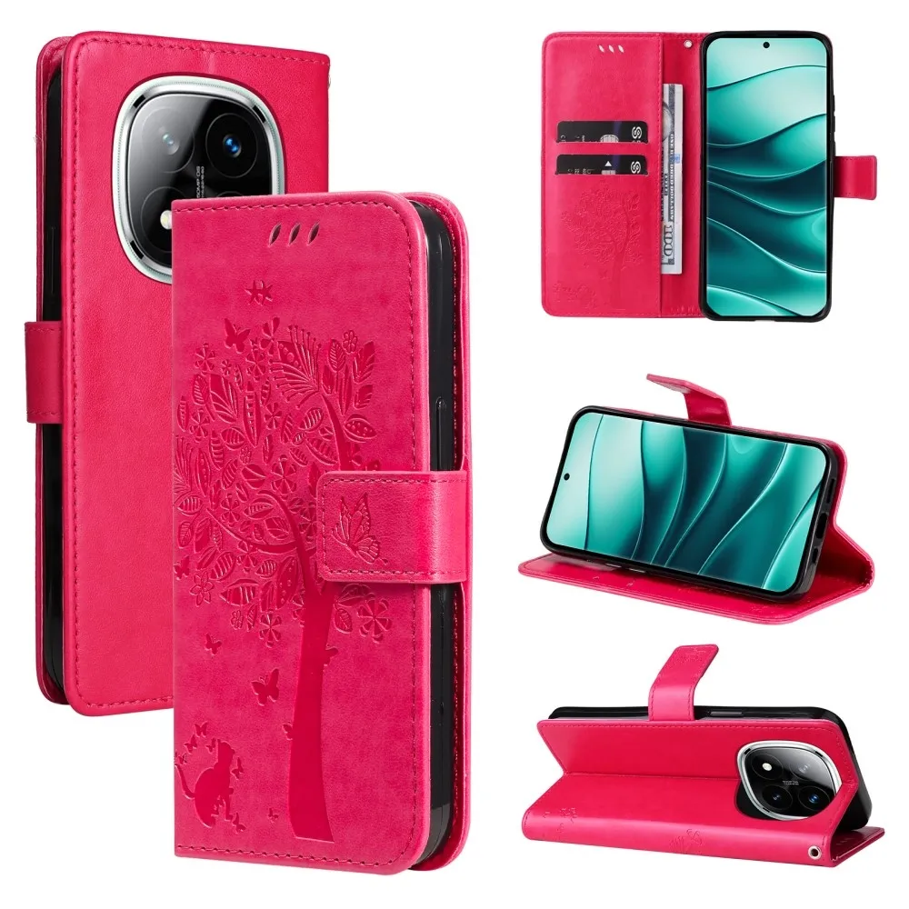 Rózsaszín pénztárca tok fák Xiaomi Redmi Note 14 Pro 5G/Poco X7 5G/Note 14 Pro+ 5G számára