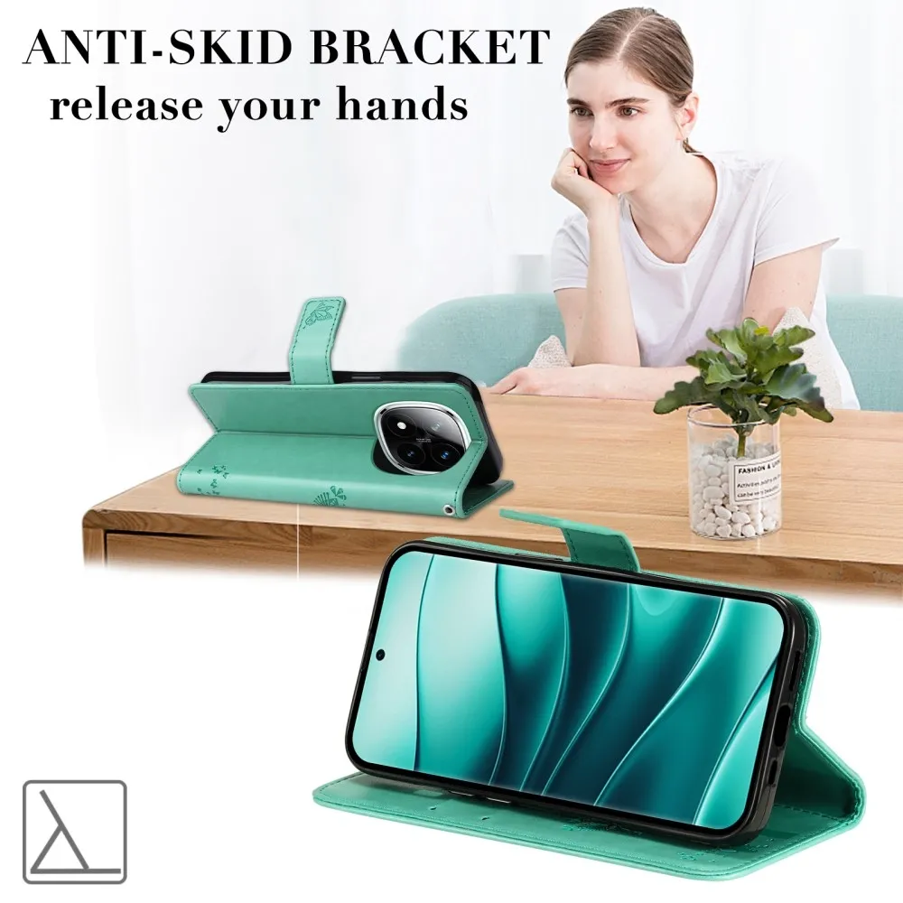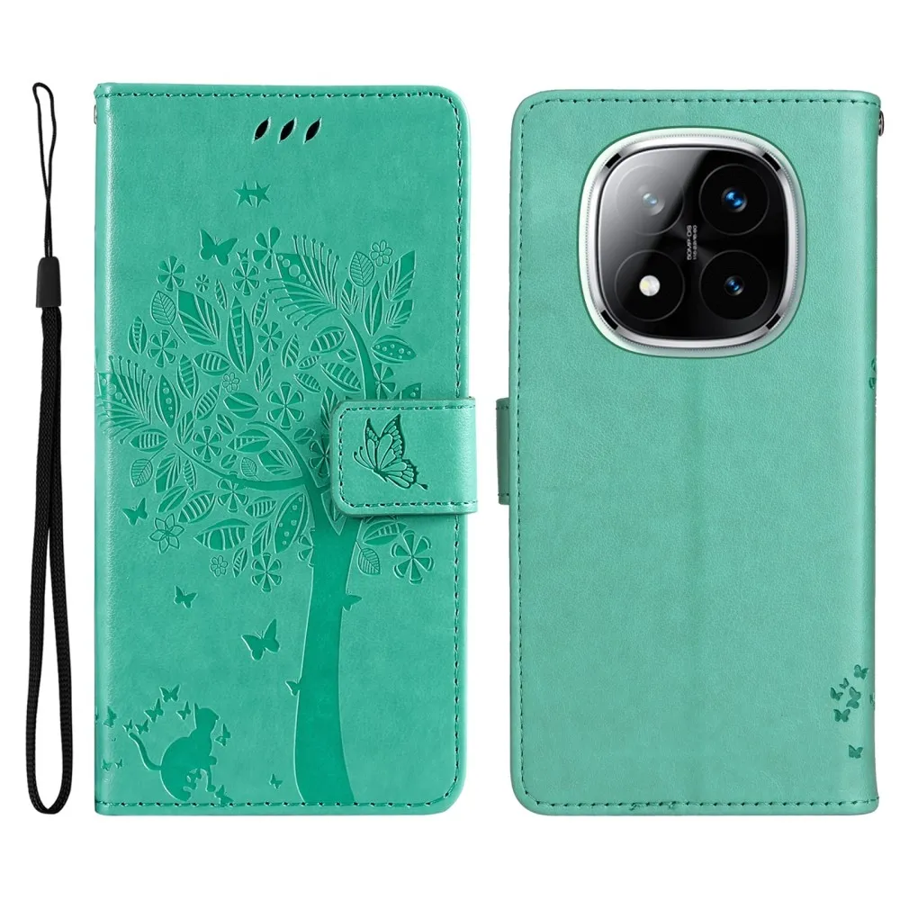 Kék-zöld pénztárca tok Fák Xiaomi Redmi Note 14 Pro 5G/Poco X7 5G/Note 14 Pro+ 5G számára