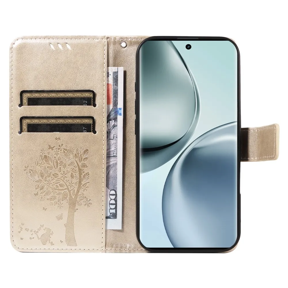 Fák könyvtáska a Realme 14 Pro 5G-hez - arany színben