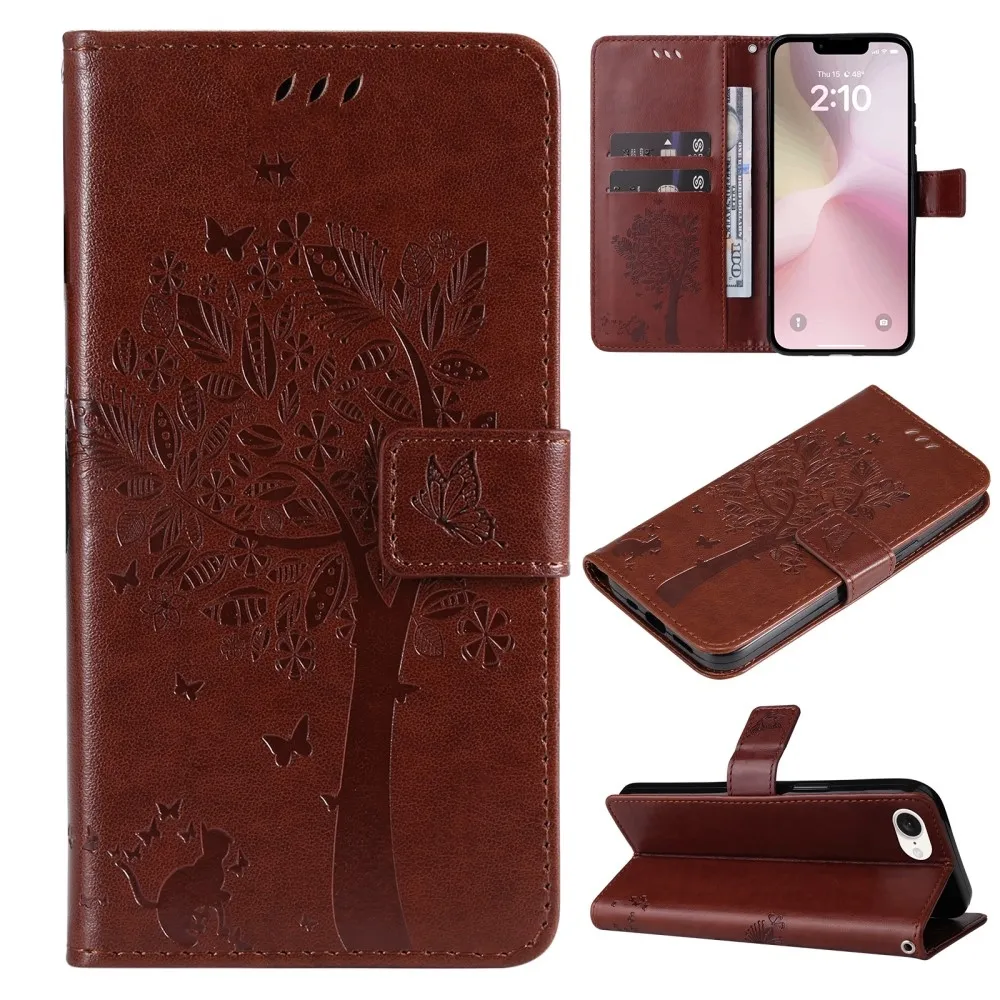 Barna pénztárca tok Trees iPhone 16e készülékhez