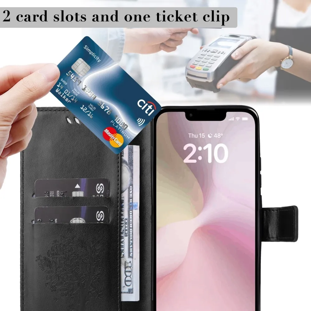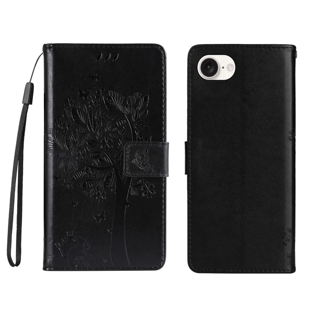 Fekete pénztárca tok Trees iPhone 16e készülékhez