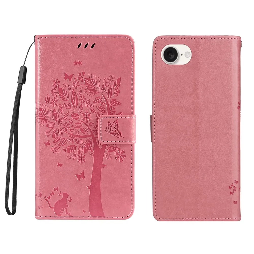 Fák könyvtáska iPhone 16e készülékhez - rózsaszín