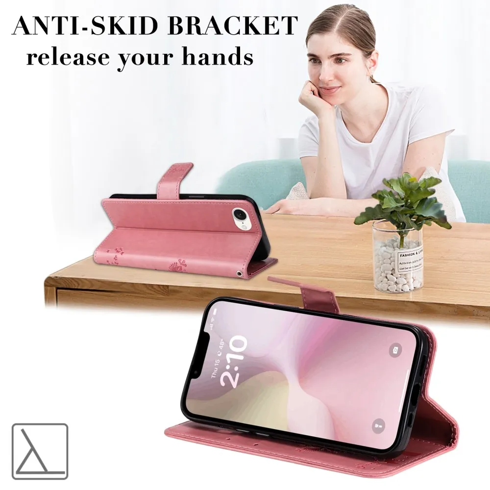 Rózsaszín pénztárca tok Trees iPhone 16e készülékhez